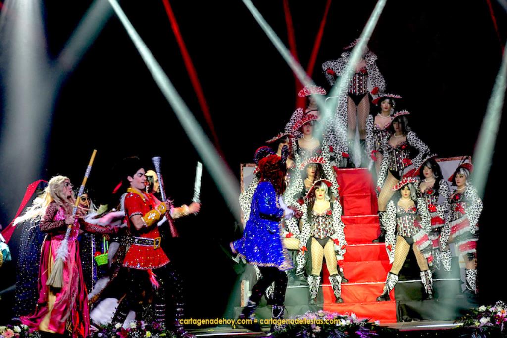 Lo curioso es que el 20 también pudo haber sido para otro del 20. En este caso nos referimos a Renacer, que ofreció ‘Magia’ con 80 componentes en una muy dinámica sucesión de personajes (gran trabajo de caracterización) de cuentos y del mundo Disney. La coreografía gestada y dirigida por Lorena Ortiz se ganó a la mayor parte del público (algo también lógico al celebrarse en Cartagena), mostrando algunos espectadores su contrariedad porque no hubiese vencido y apuntando algunos a que pudo haber sufrido algún tipo de penalización. Lo preguntamos y nos lo negaron desde la organización, por lo que bien se puede considerar que ‘Destello’ se llevó el título por su técnica ante un jurado con profesionales en este mundillo y que el grupo de la Barriada Virgen de la Caridad obtuvo el galardón popular.