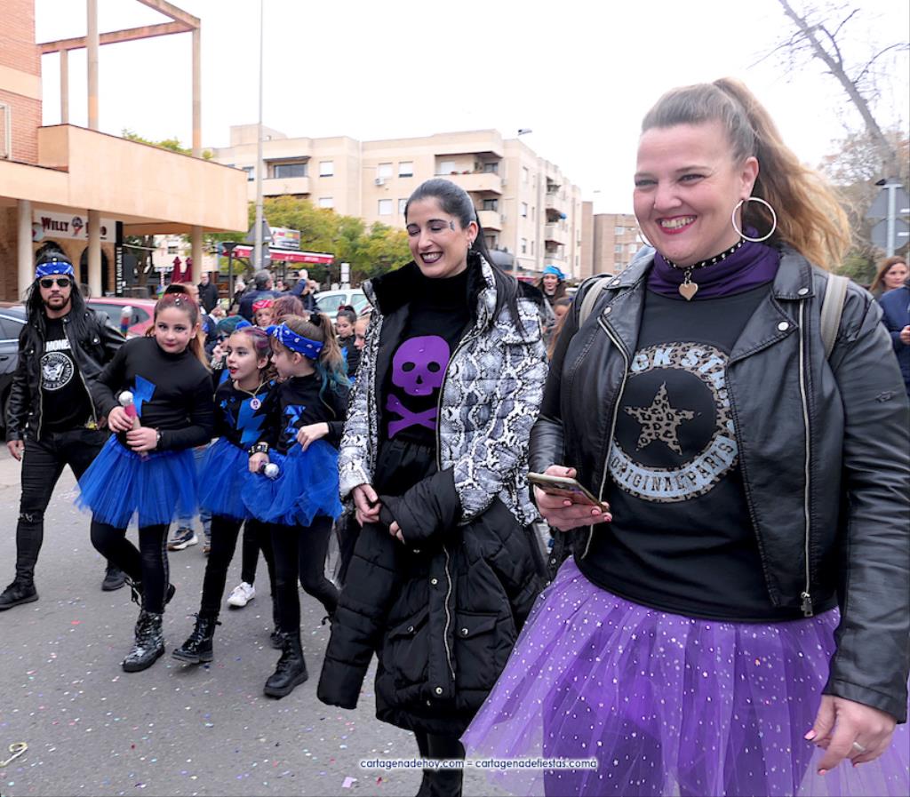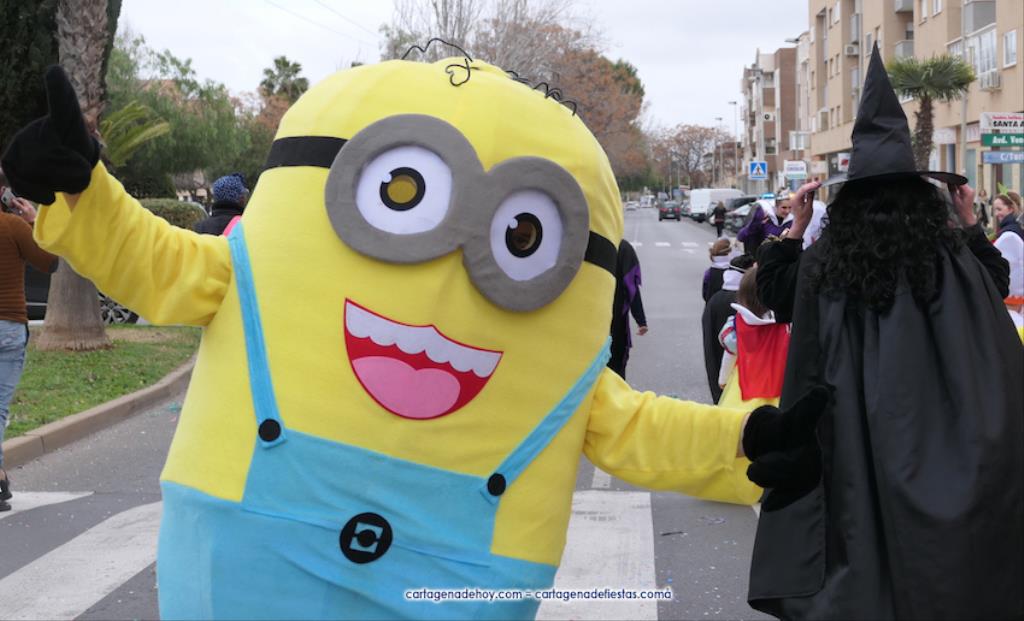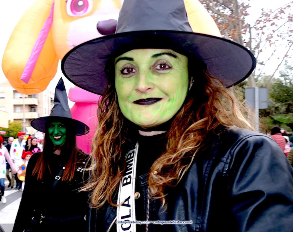 El gran pasacalles, además de las comparsas, estuvo enriquecido por un quinteto de batucada y por los muñecos gigantescos, entre los que estaba un dinosaurio y 'Hulk'. Fue curioso, por lo visto en comparación a la moda observada en otros lugares, que en esta ocasión esa representación de 'La Masa' fue la única presencia de un superhéroe. También participaron representantes de la Asociación de Vecinos y de Sana Ana Art. Fue un desfile variado, colorido, animado y largo que avanzó a muy buen ritmo. Enhorabuena a los organizadores y participantes. El epílogo se ubicó en las instalaciones del centro, con bocadillos para los alumnos que habían desfilado y convivencia con música para poner el broche a la alegre jornada.