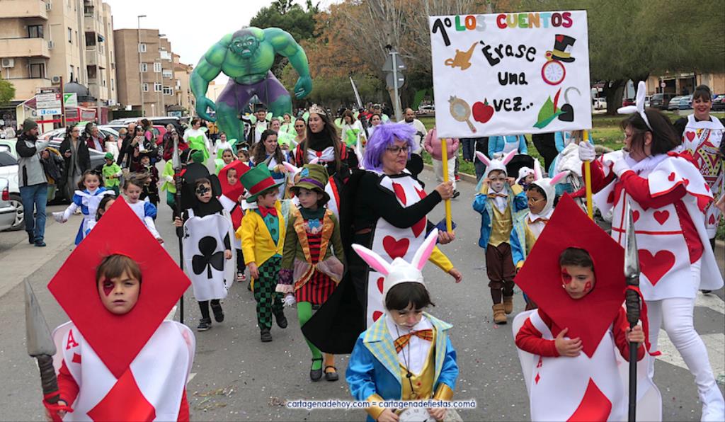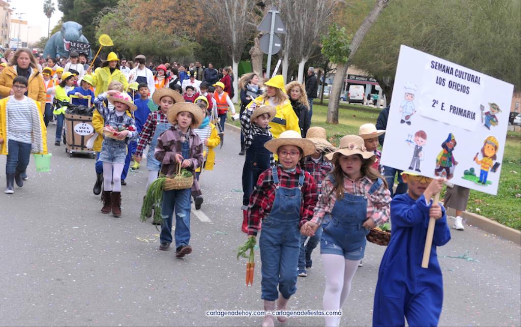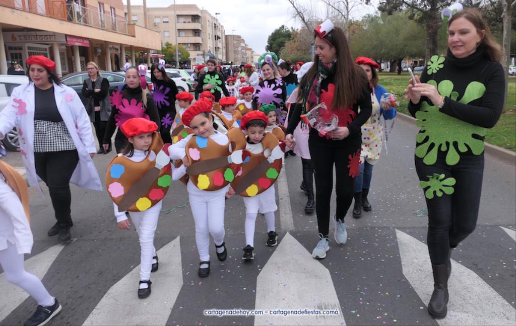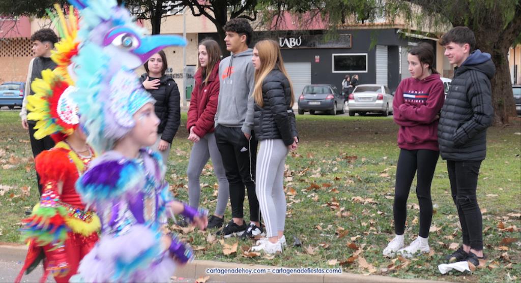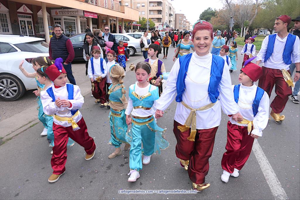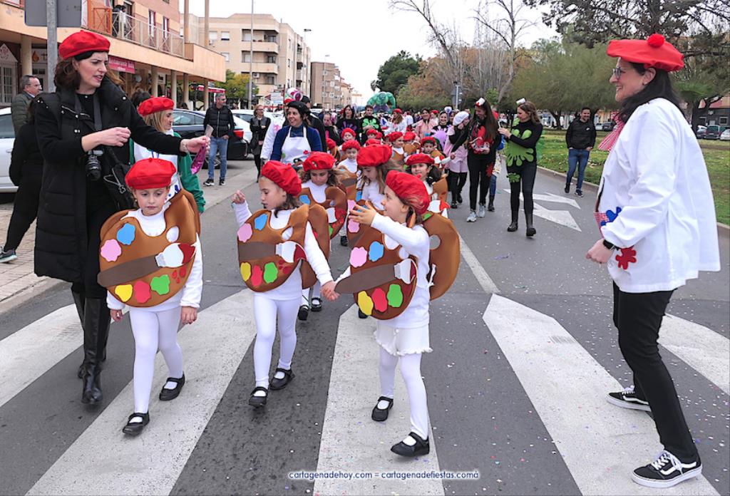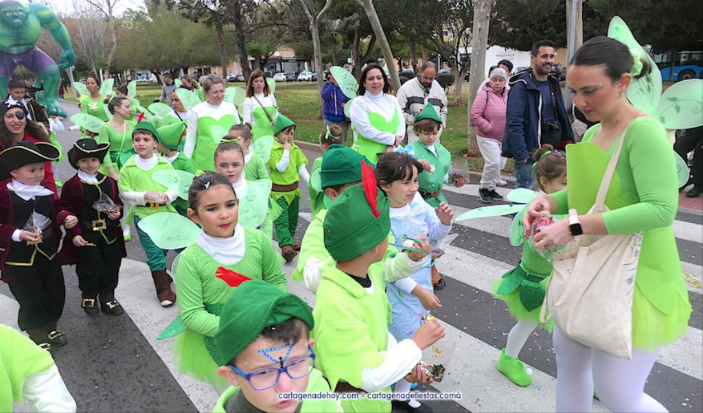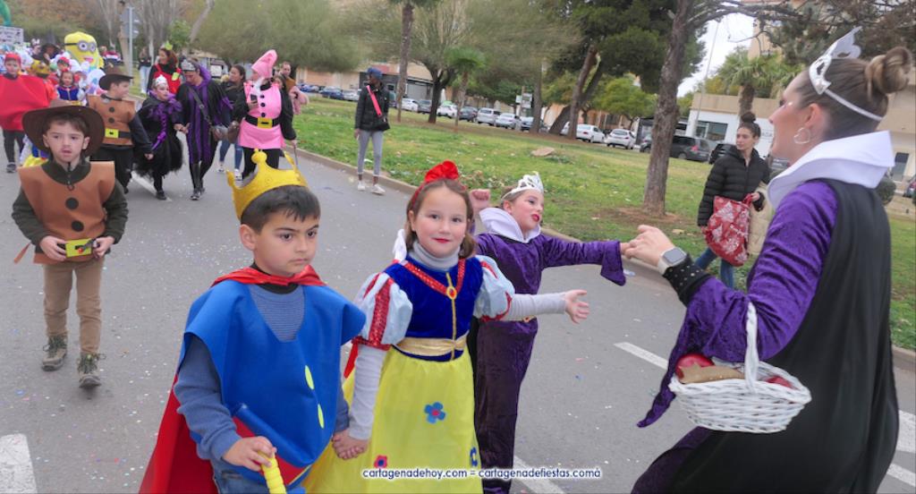 El desfile carnavalero por el Polígono Santa Ana del 25 aniversario de Colegio Narval fue protagonizado por cientos de alumnos con muy dispares disfraces, además de figuras gigantes, de los bailes coreográficos de la comparsa Paraíso y de las reinas del Carnaval de Cartagena 2023 con su corte de honor de Salgueiro. GALERÍA DE FOTOS (pinchar aquí)