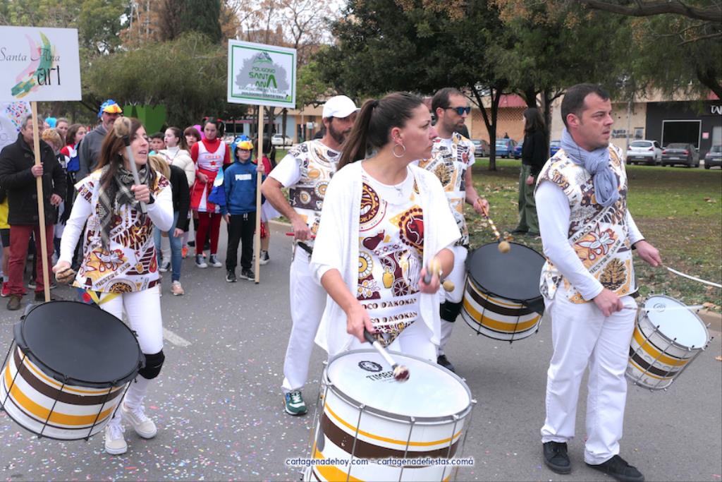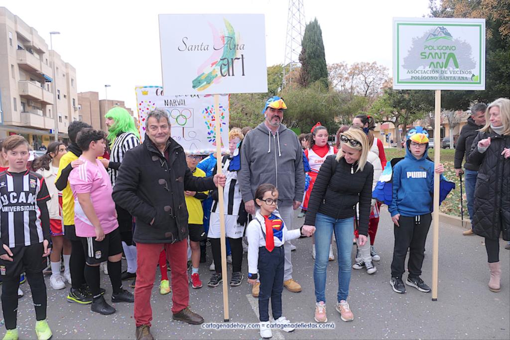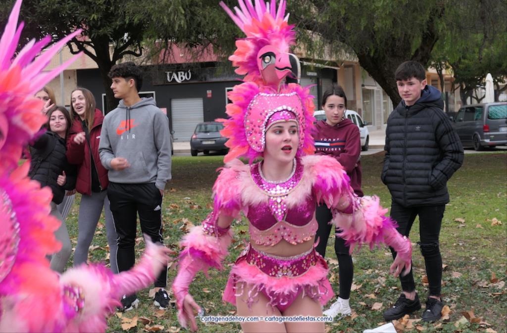 Polígono Santa Ana tuvo un gran desfile de disfraces y bailes con motivo del cumpleaños de plata del Colegio Narval, celebración por la que la dirección del centro quiso ofrecer un espectáculo especial, consiguiendo la participación de la comparsa local Paraíso, dirigida por su coreógrafa África Hernández, y de cinco representantes de Salgueiro cerrando el desfile, entre las que estaba Virgina Villada, la reina adulta del Carnaval de Cartagena de este año, e Irene Dodero, elegida para la corona infantil de 2023, estando ambas arropada por integrantes de la corte de honor dentro de la comparsa Salgueiro.