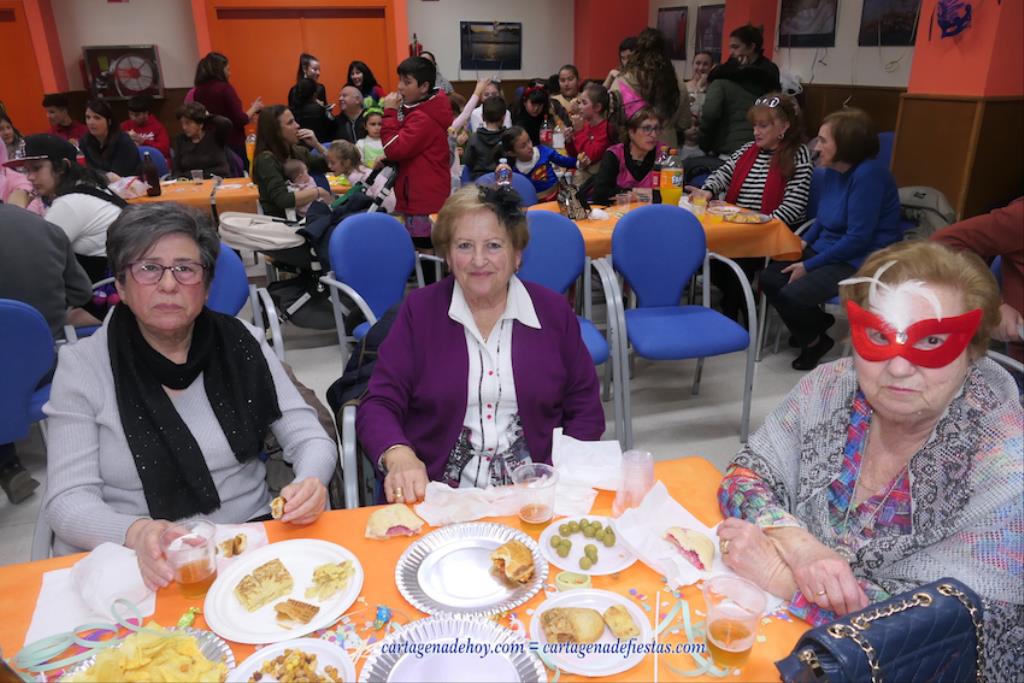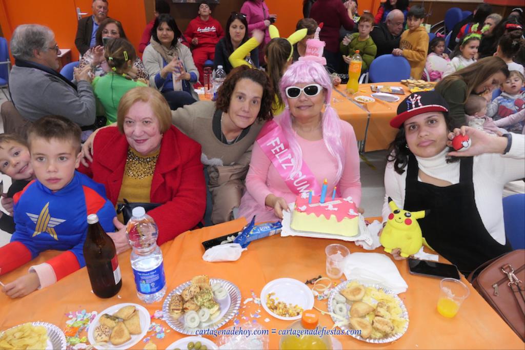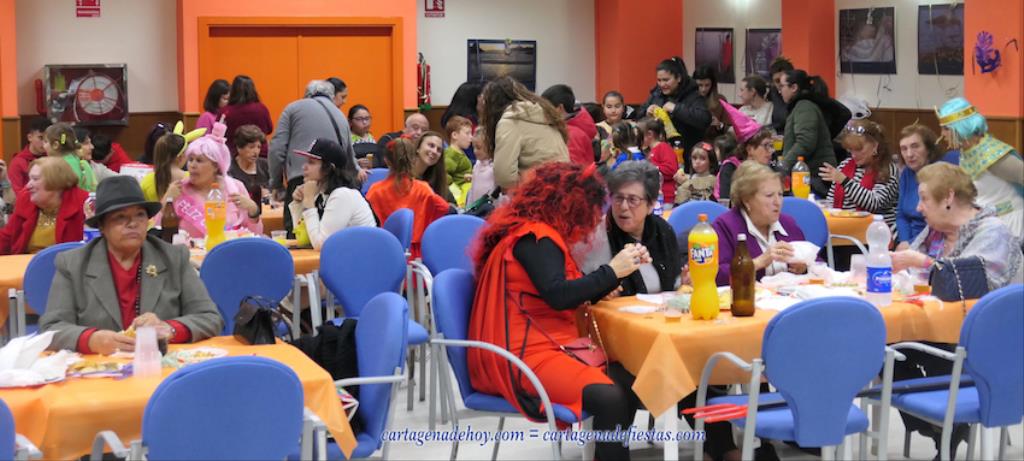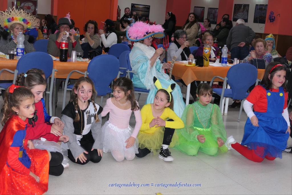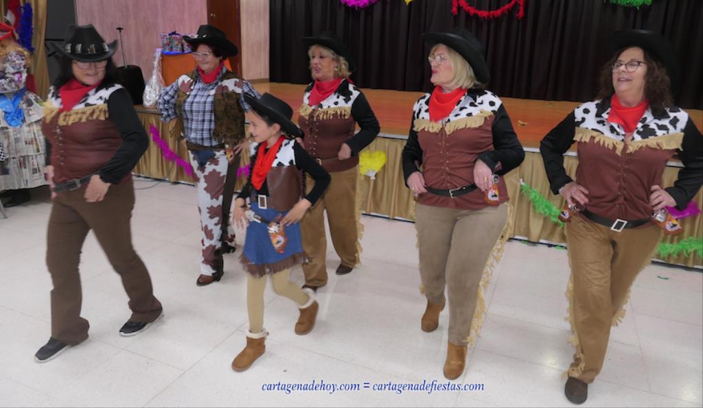 La tarde, que contó con muy alta participación de vecinos, bastantes de ellos disfrazados, fue enriquecida por los bailes de la academia de Rocío de la Cova y también acogió la celebración de un bingo.