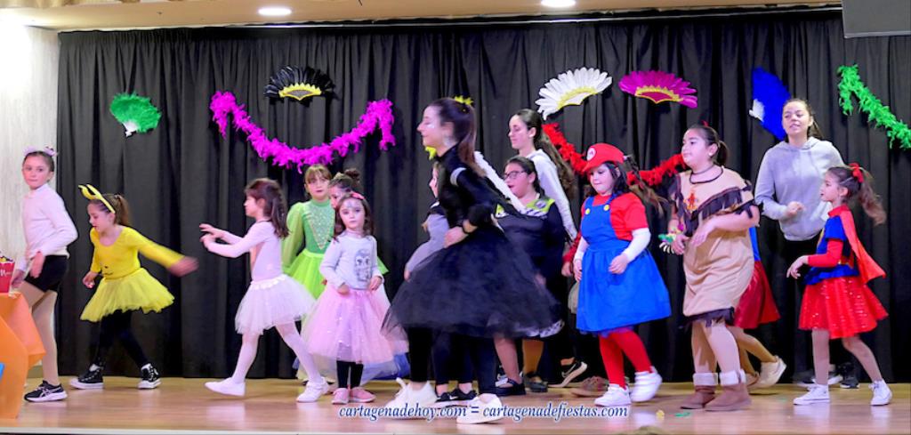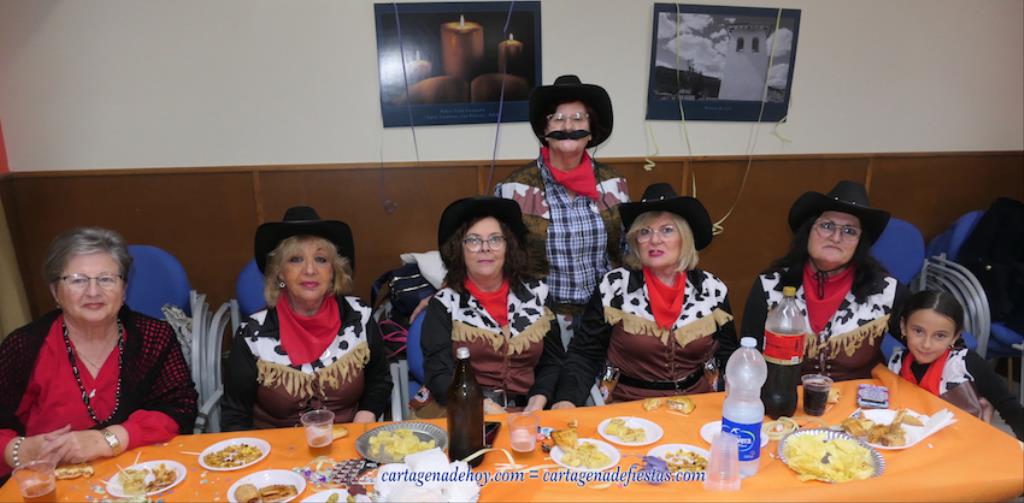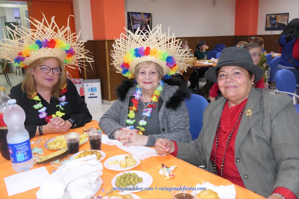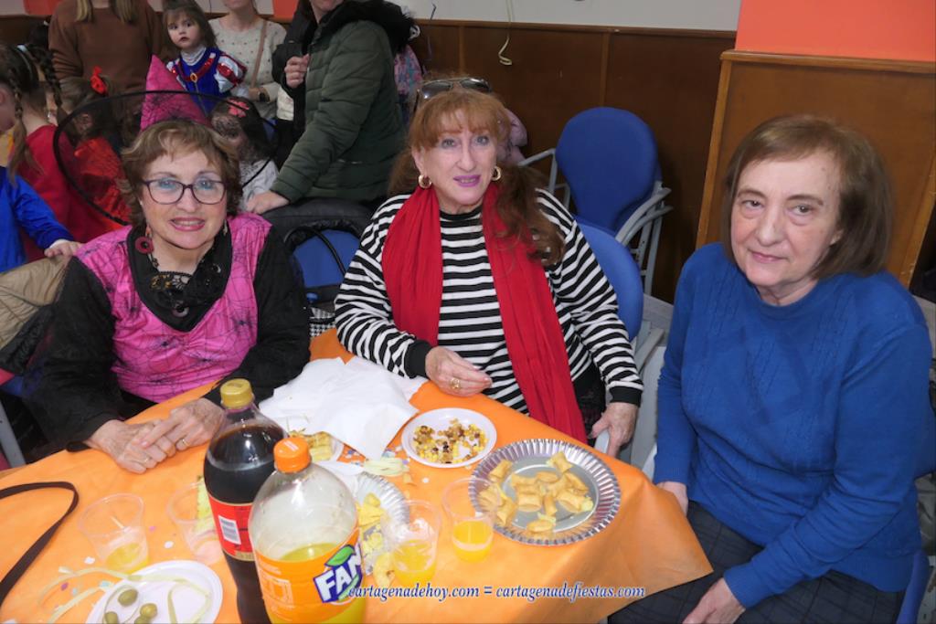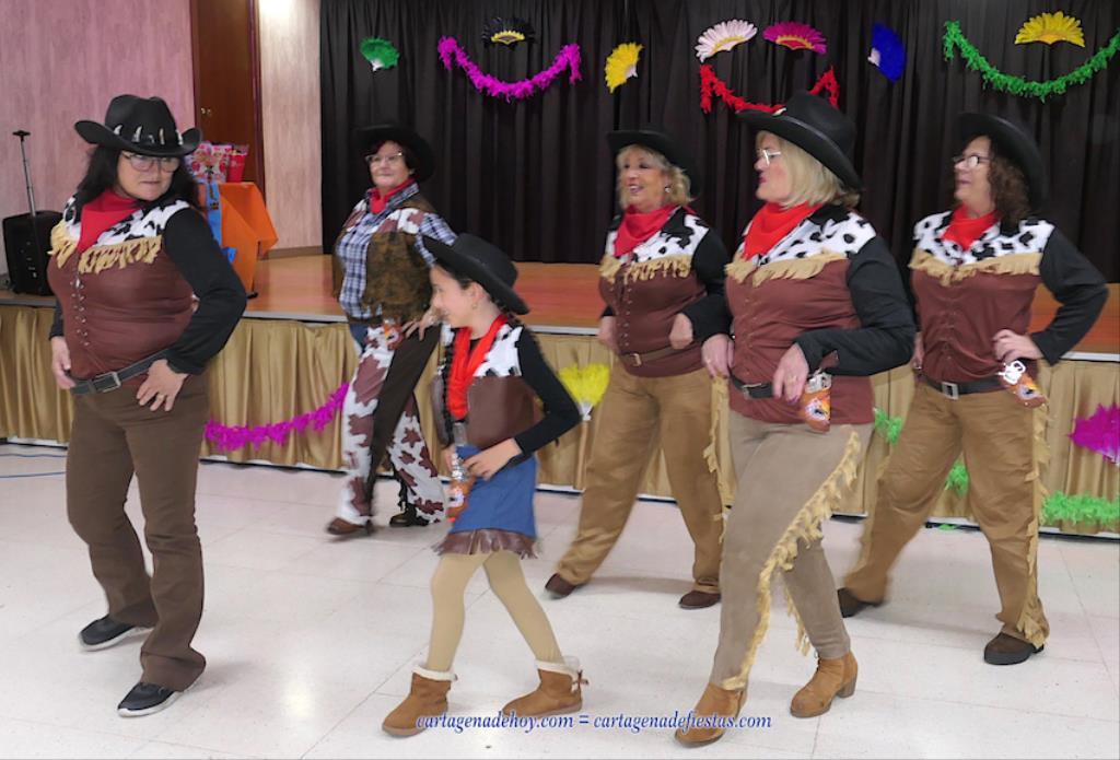 La tarde, que contó con muy alta participación de vecinos, bastantes de ellos disfrazados, fue enriquecida por los bailes de la academia de Rocío de la Cova y también acogió la celebración de un bingo.
