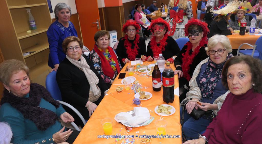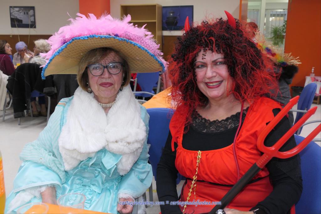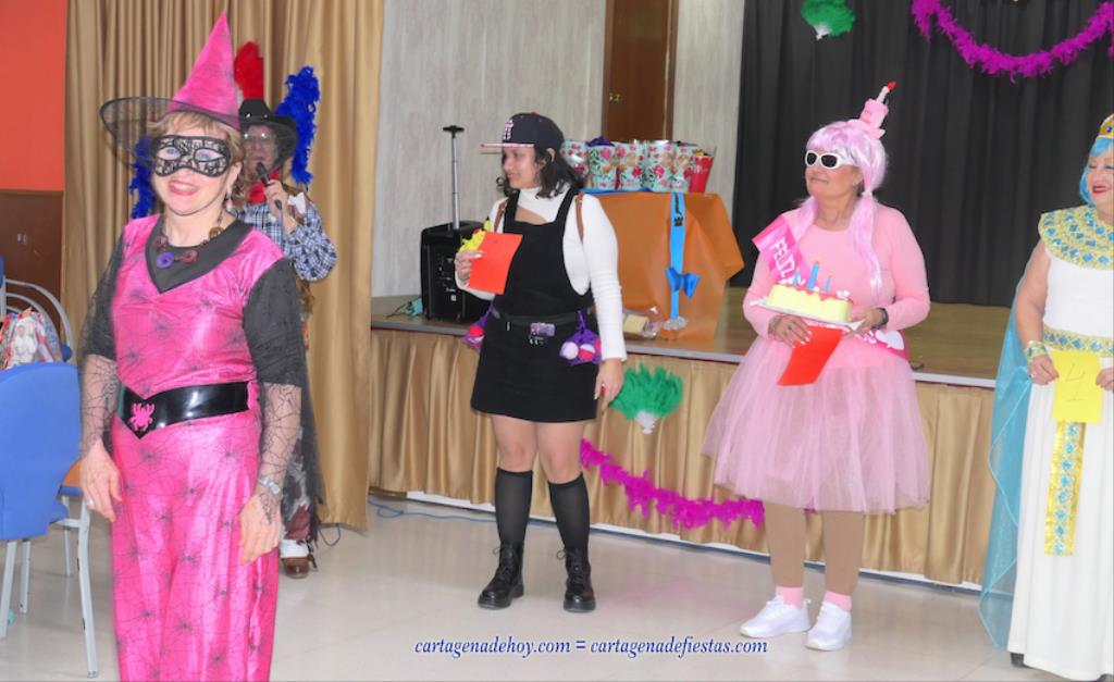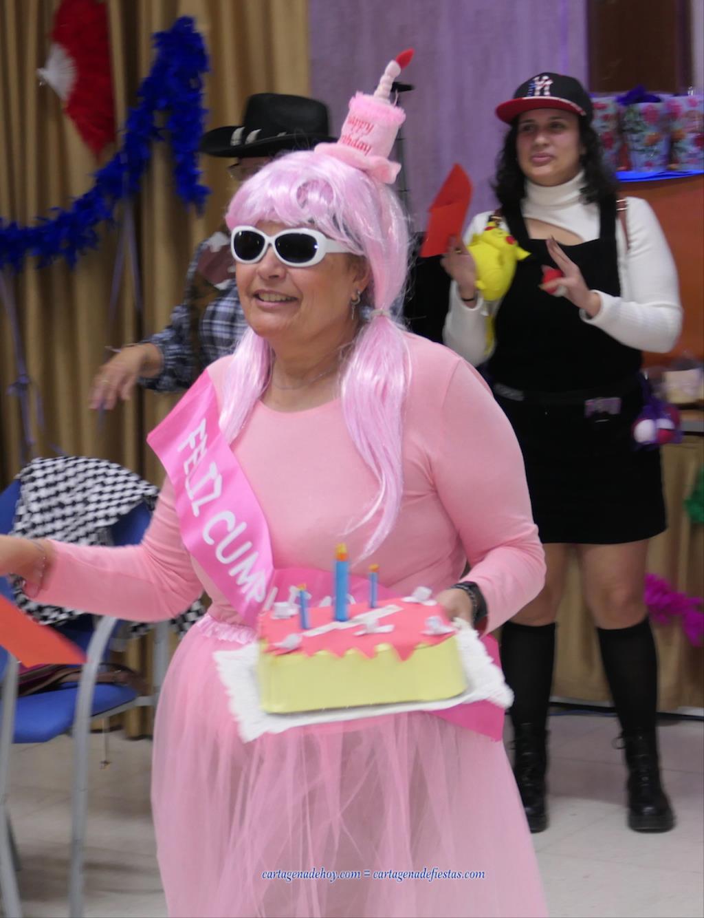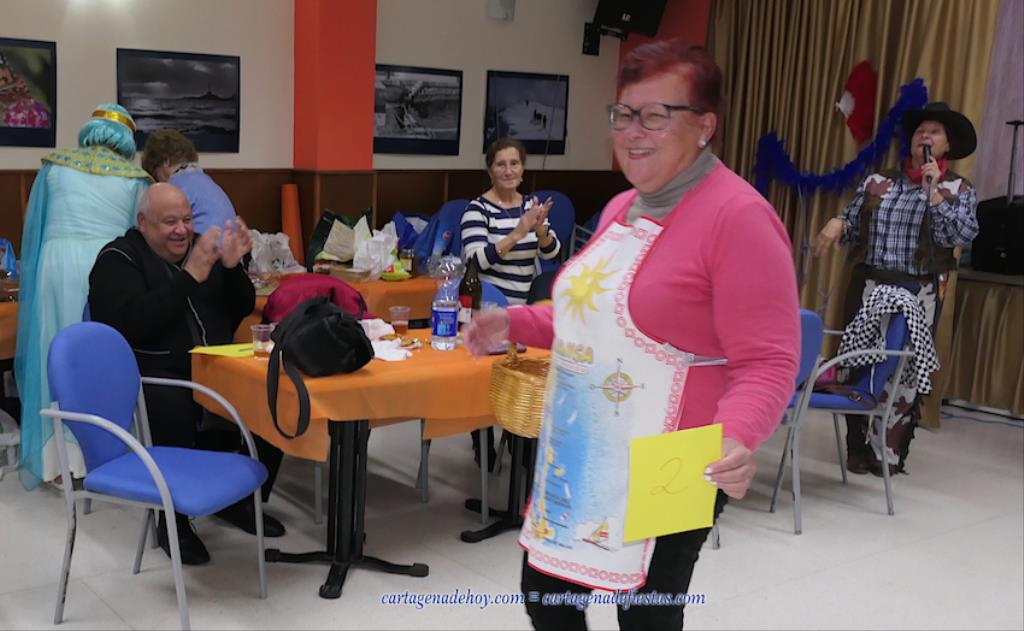 Lleva mucho trabajo preparar un disfraz como el creado por Veri García Furió para la fiesta de carnaval que tuvo lugar en el local social de Los Dolores. “He querido rendir homenaje a mis compañeras de la asociación y a las publicaciones de papel, tan castigadas desde la llegada de internet”, indicaba a Cartagena de Hoy (Cartagena de Fiestas) luciendo un traje (incluido el abanico) elaborado con hojas de los periódicos La Verdad, La Opinión y As, además de la (desaparecida) revista El Puente de Cartagena Norte, de donde sacó las fotografías de sus compañeras del colectivo femenino Cartagonova.