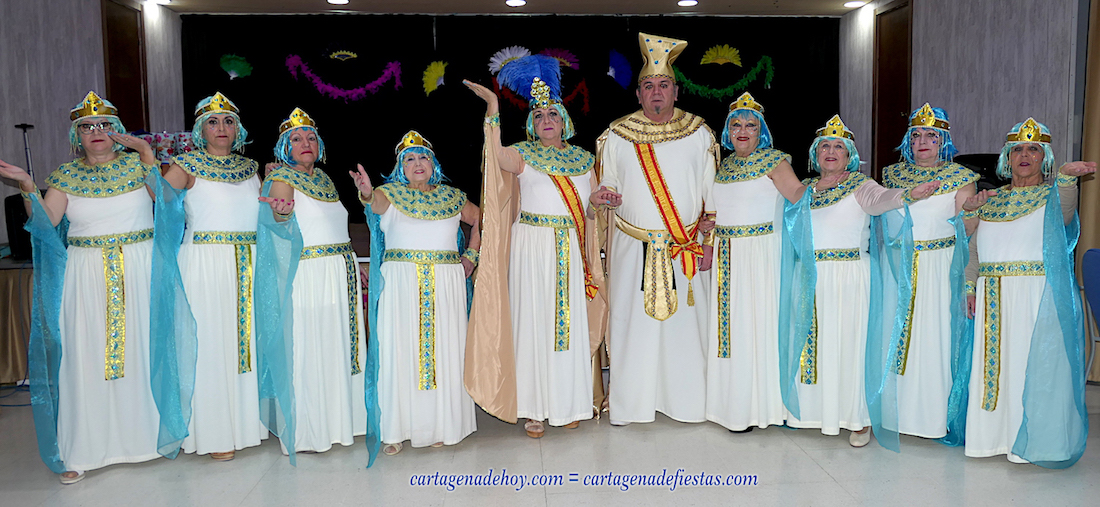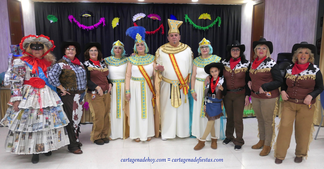 También estuvo presente la comparsa de mayores 'Las salerosas' de Miranda, con Juan Manuel Rabal y Dolores Isabel Cervantes, los reyes del carnaval de Cartagena de mayores. El grupo ofreció una muy buena coreografía fuera de concurso.