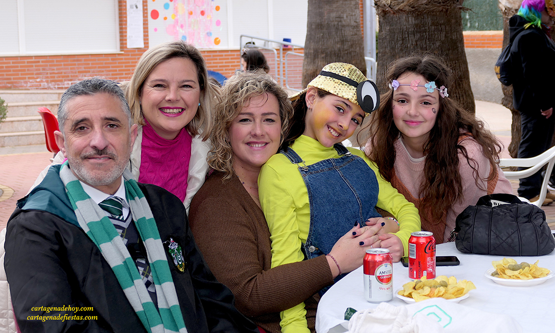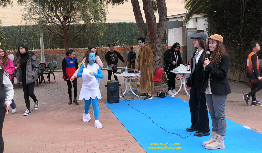El centro juvenil Áncora organizó, durante cinco horas, una fiesta de carnaval en las instalaciones del centro de Barriada de Hispanoamérica, que reunió a personajes muy variopintos, como pitufos, mimos, policías…