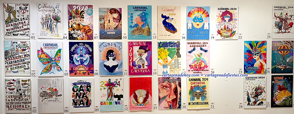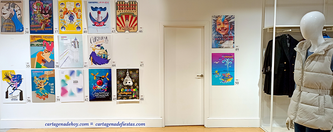 La primera planta de El Corte Inglés en Cartagena ha mostrado las cincuenta obras presentadas para convertirse en el cartel oficial del Carnaval de Cartagena de 2024. Ahora sólo queda que el jurado elija al ganador.