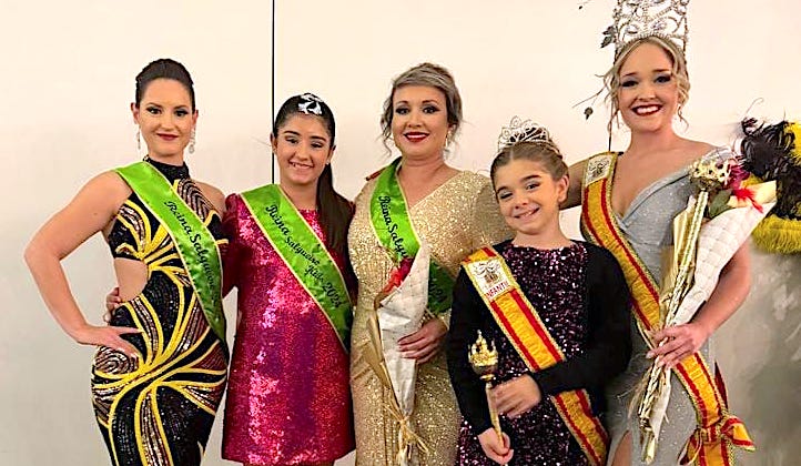 Ilusión de Galifa, Ipanema, Sambao, Baracay y Salgueiro presentan seis candidatas al título de Reina del Carnaval de Cartagena 2024, cuya gala se celebrará en la noche del sábado 3 de febrero. Por su parte, cinco grupos son los que presentan chicas para la categoría infantil. En la foto se observan las dos candidatas adultas y una infantil de Salgueiro, junto a las que triunfaron el pasado año.