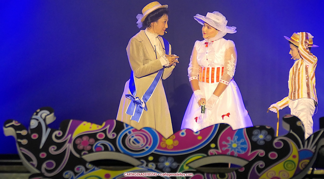 Si Don Carnal y Doña Cuaresma son hermanos en adultos, en la categoría infantil son primos Lucas Cegarra Sánchez y Elena Ortega Sánchez, integrantes de la comparsa Peché de El Llano del Beal, quienes se han estrenado esta tarde en el Carnaval de Cartagena, mostrándose un activos en su número sobre el escenario y participativos con el final del espectáculo de Mary Poppins.
