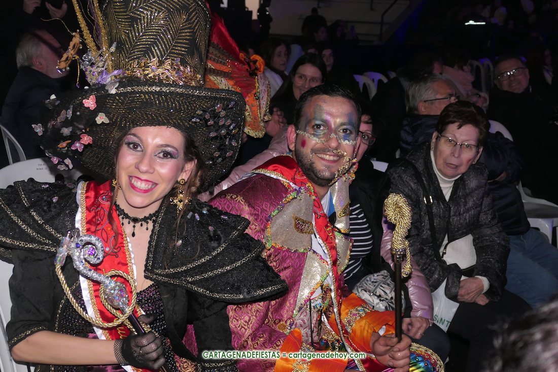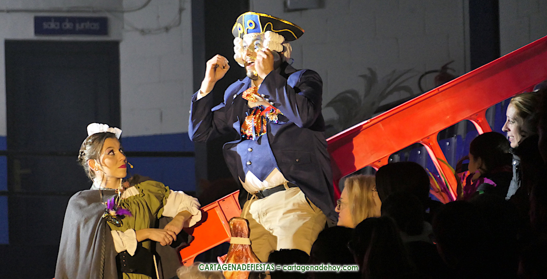 Los hermanos Samuel y Raquel Rubio López son desde anoche los personajes del Carnaval de Cartagena que representan la juerga y el recogimiento, respectivamente, ofreciendo una animada y simpática disputa verbal que culminó con la chica contagiada del espíritu de esta gran fiesta hasta que finalicen los días carnavaleros.
