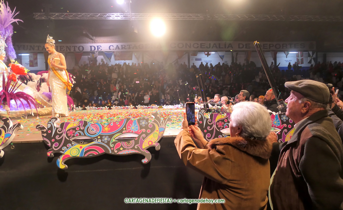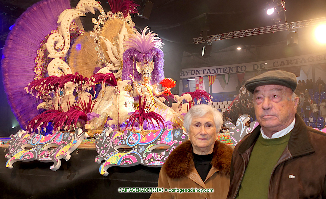 Isabel Navarro y Francisco González Meca se emocionaron de alegría con el título de Reina del Carnaval de Cartagena 2024 conquistado por su nieta Soledad González Solano (Salgueiro).