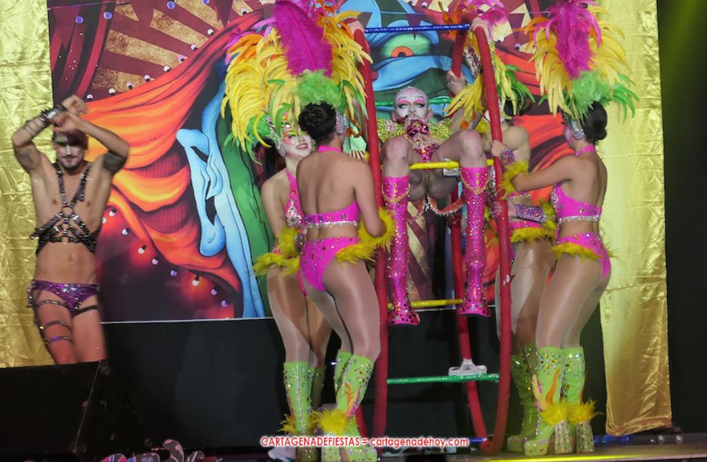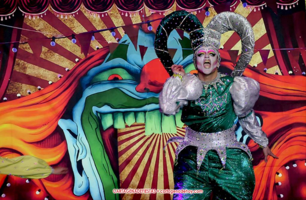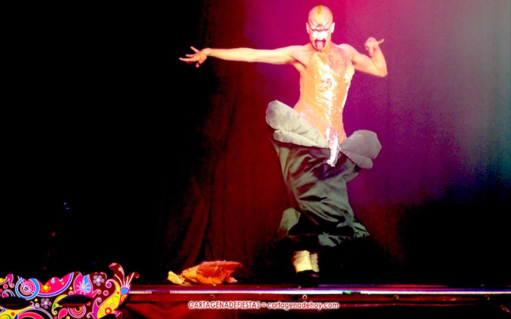 Curiosamente, los dos representantes de Cartagena habían preparados sus espectáculos basados en el circo. David Lázaro Martínez, de El Llano del Beal, había participado en segundo lugar como 'Drag Iridra', a quien se observa en la foto que figura bajo estas líneas.