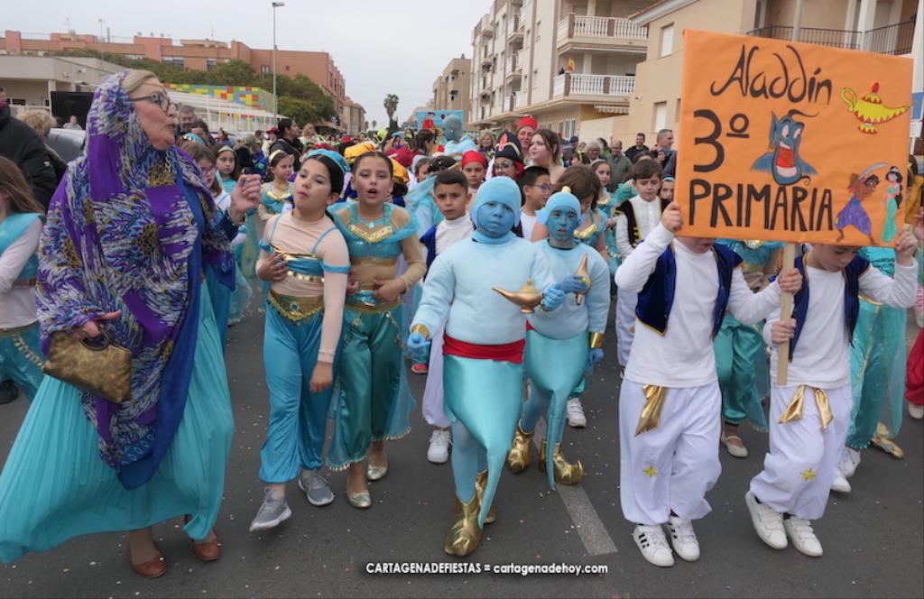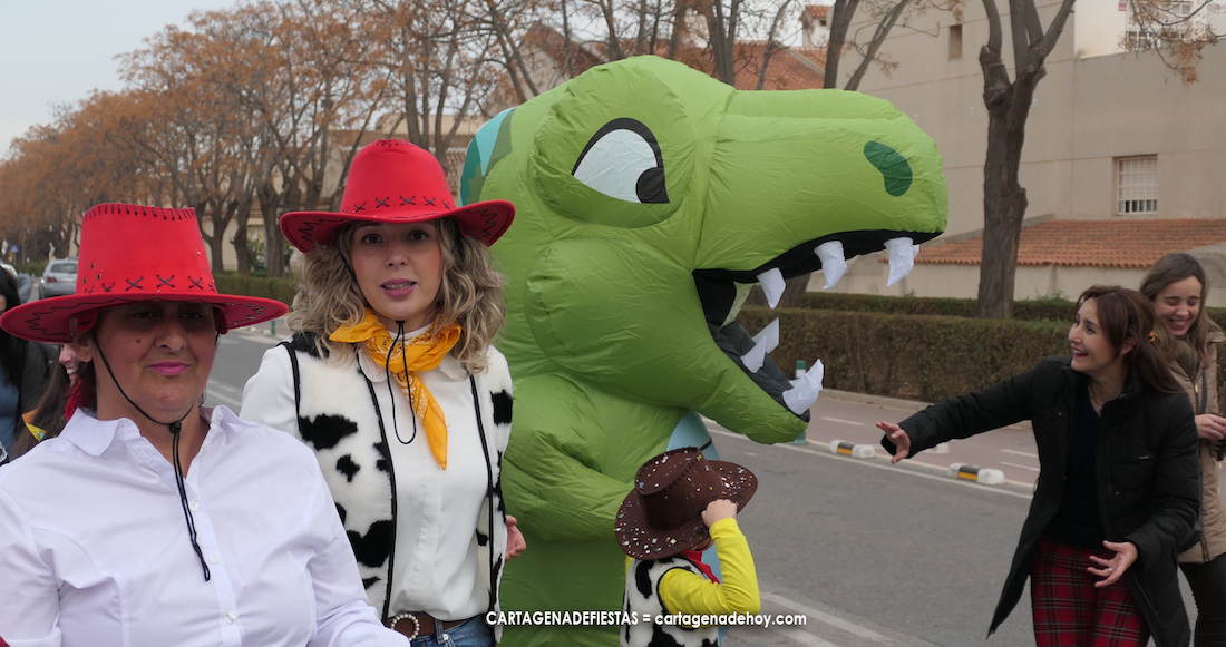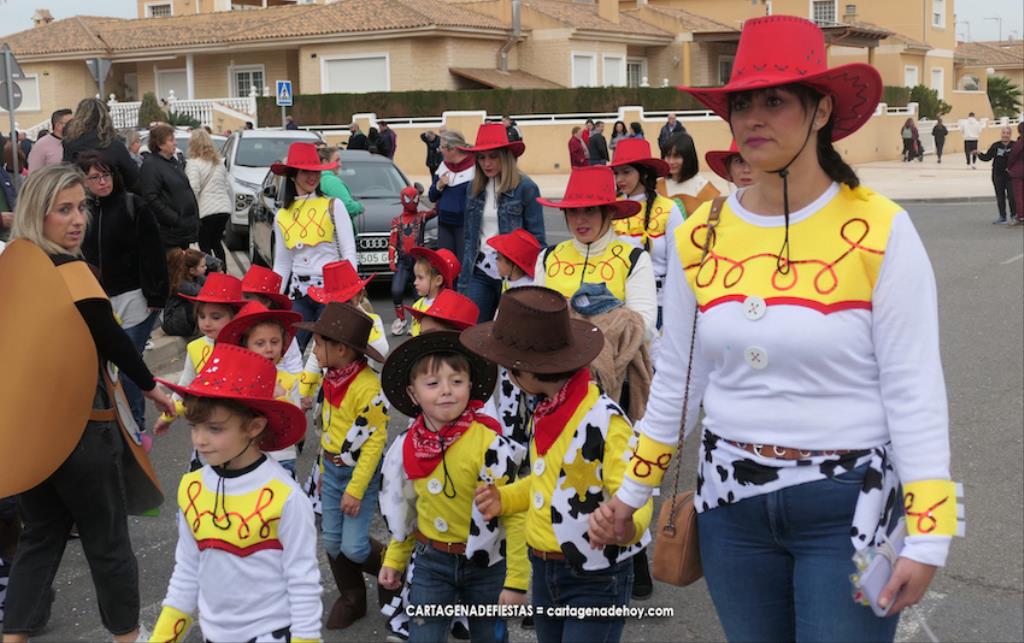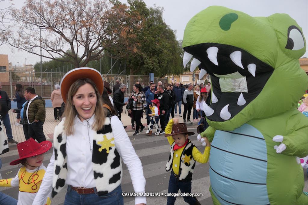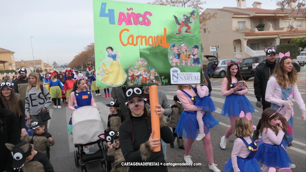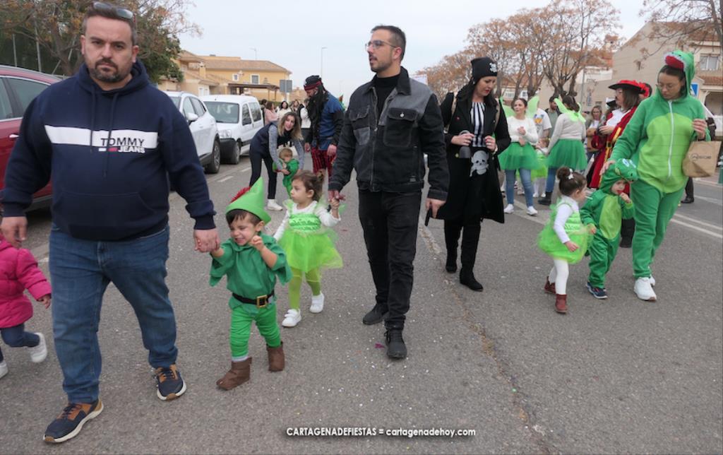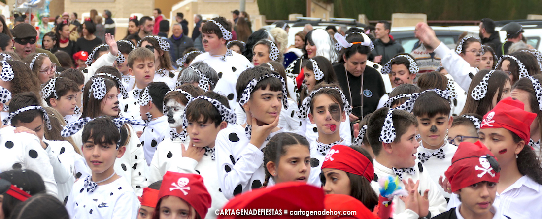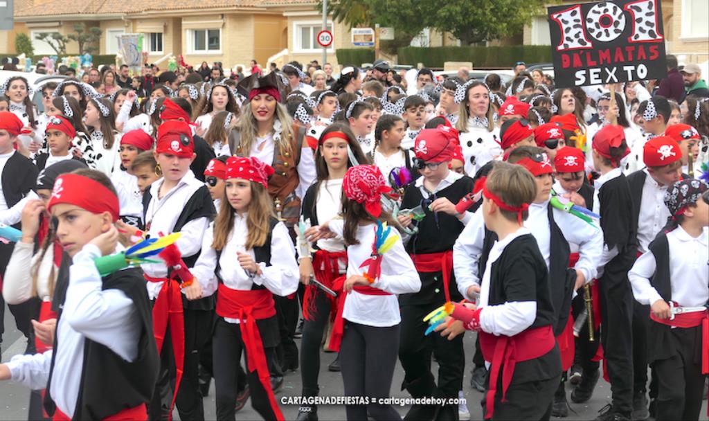 Decenas de dalmatas, piratas, enanitos, deshollinadores y otros conocidos personajes han protagonizado el gran desfile anual del carnaval del Colegio Narval, que se ha estructurado en dos grupos, con uno primero para los alumnos menores de cinco años y otro, con música, para los de las siguientes etapas educativas, cerrando una representación de la comparsa local Paraíso, que ha colaborado con este desfile al igual que la asociación de vecinos.