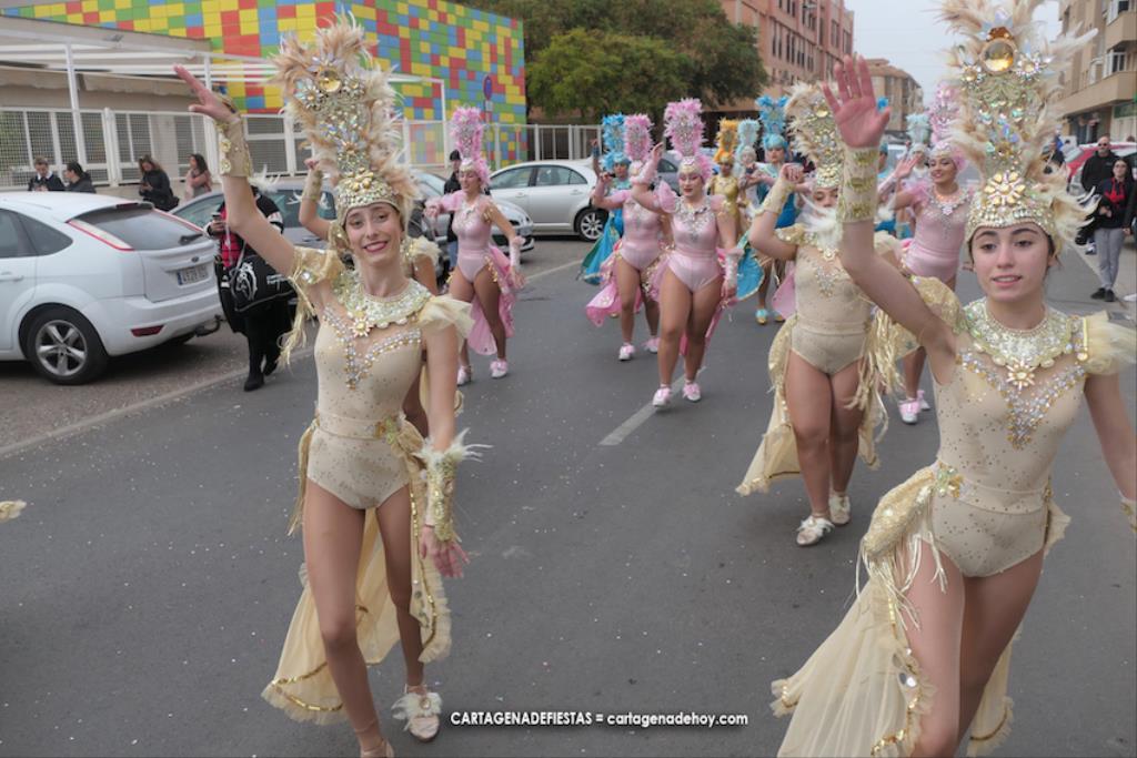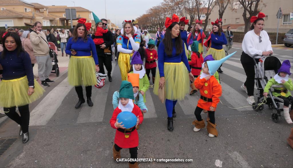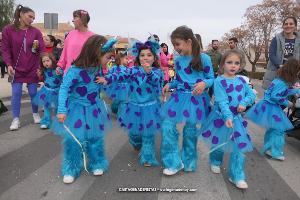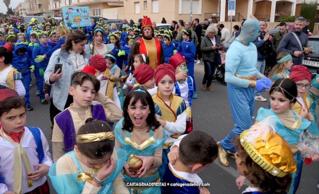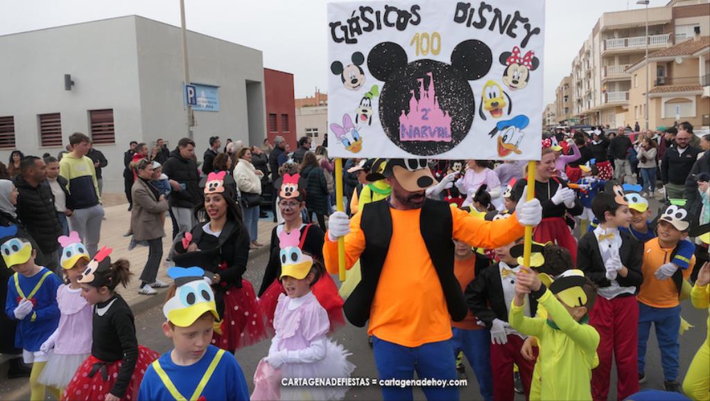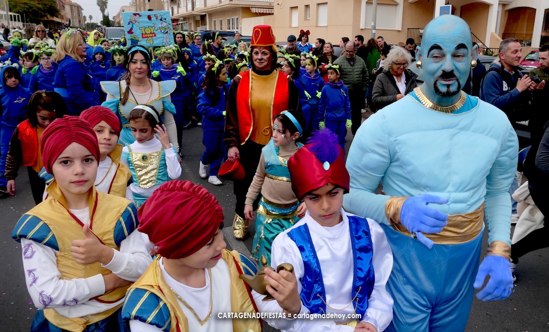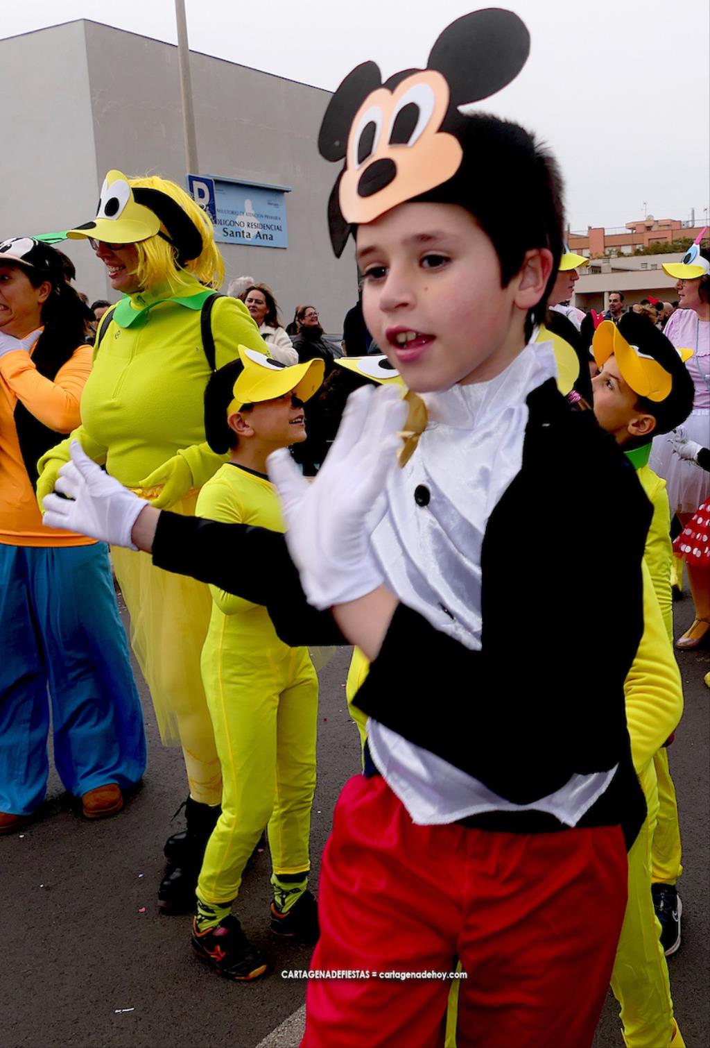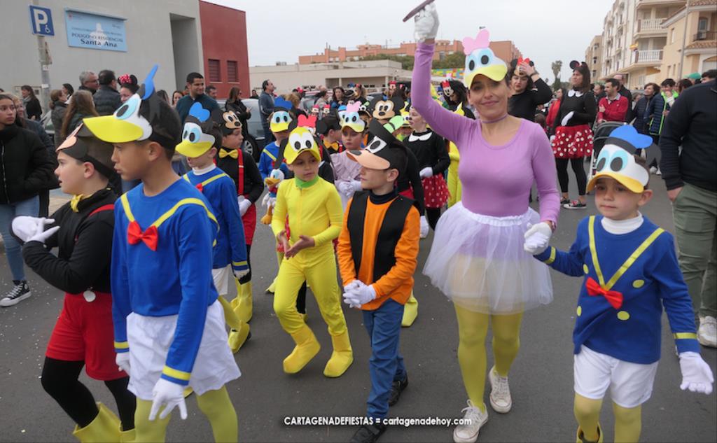 Los alumnos del Colegio Narval han atraído a numerosos familiares y vecinos en su colorido, alegre y multitudinario pasacalles carnavalero por el Polígono Santa Ana, donde ha representado conocidas películas de la factoría de Walt Disney, poniendo el colofón a la marcha la comparsa Paraíso y la asociación de vecinos.
