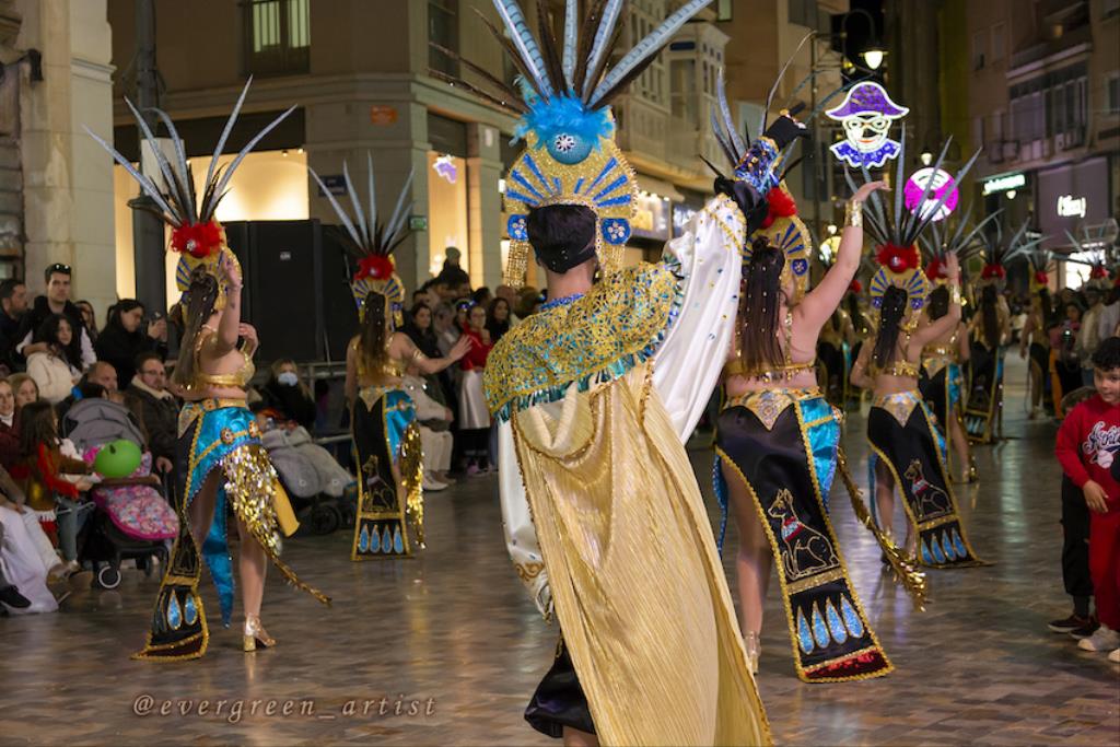 La joven cartagenera Marta Martínez (evergreen_artist) ofrece su particular visión del gran pasacalles del Carnaval de Cartagena'24 con escenas tomadas en la Alameda de San Antón y en Puerta de Murcia. La foto superior es de Salgueiro Kids.
