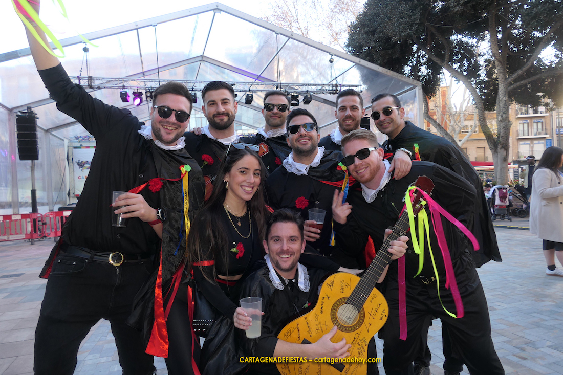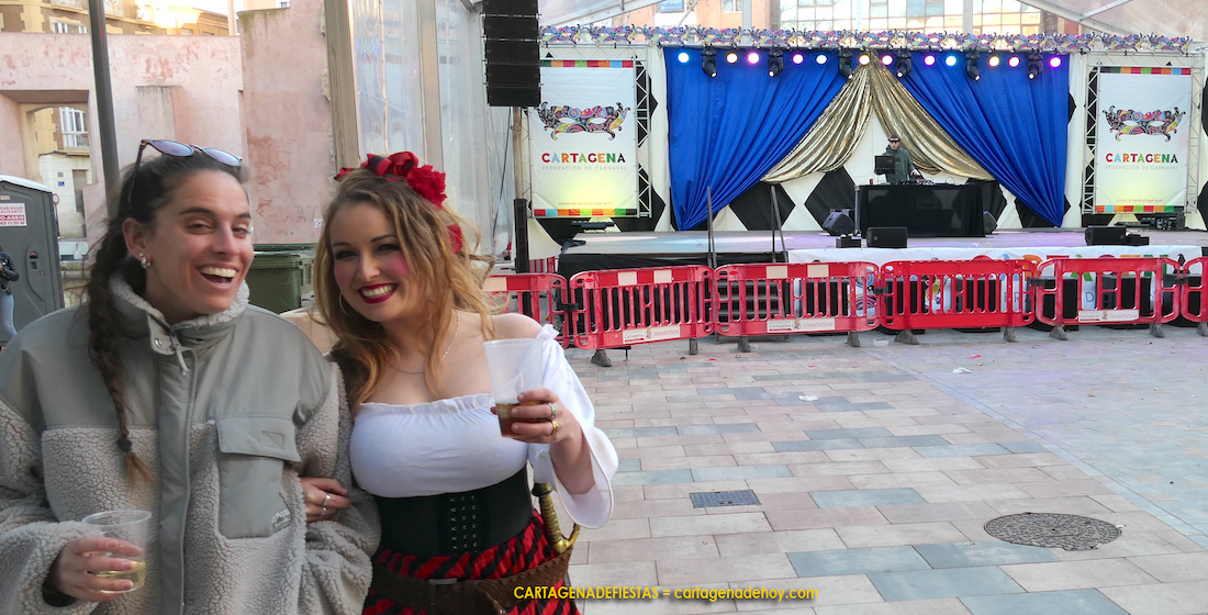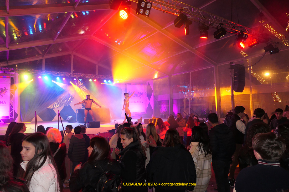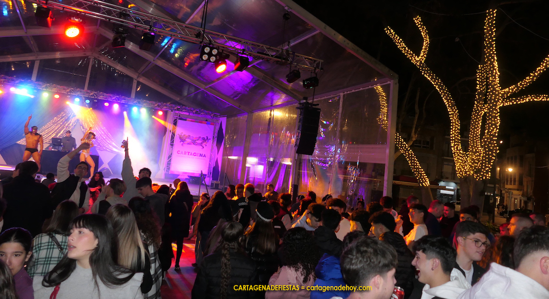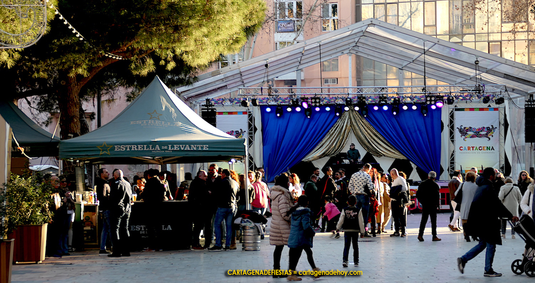 El novedoso epicentro del Carnaval de Cartagena'24 en su recta final en la plaza de Juan XXIII ha tenido muy buena respuesta popular, ofreciendo diferentes temáticas y ambientes, según la hora.
