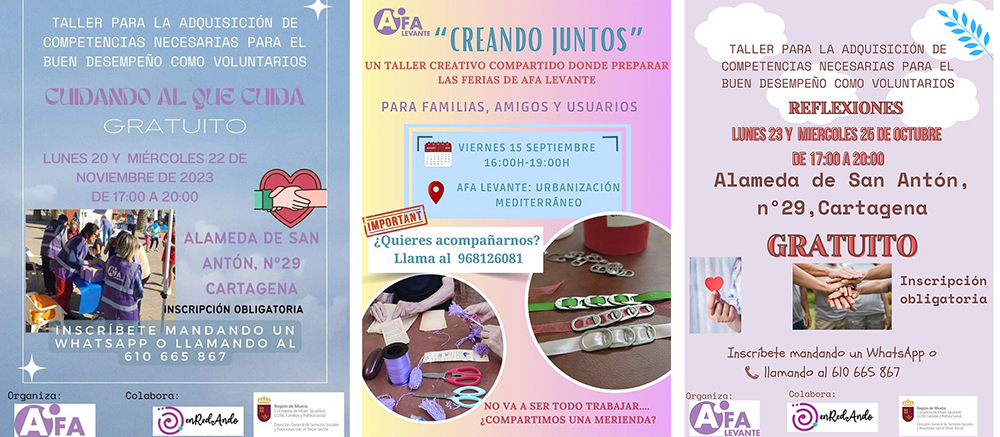 Además, AFA informa sobre los talleres para voluntarios que se realizarán próximamente en Cartagena y en Los Alcázares, estando ya abierto el plazo para apuntarse.