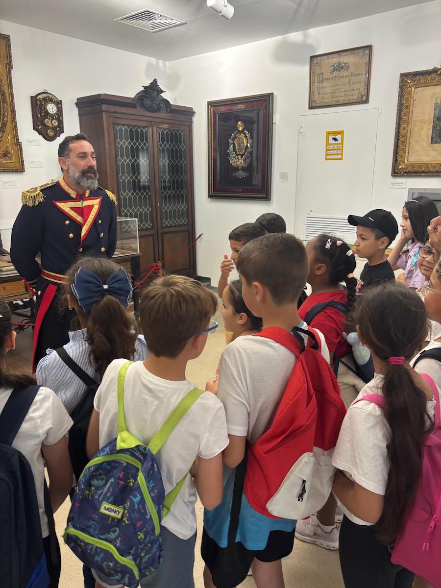 La jornada comenzó con una visita muy especial a la Sala Isaac Peral, donde los escolares premiados pudieron conocer de cerca el emblemático submarino Peral y profundizar en su historia y significado para la ciudad. Durante la visita, los alumnos tuvieron la oportunidad de adentrarse en el despacho original de Isaac Peral, fielmente conservado en el museo, donde fueron recibidos —con gran sorpresa y entusiasmo— por el propio Isaac Peral, representado por Jesualdo Lisón. Allí, Peral compartió con los asombrados alumnos detalles sobre la construcción de su submarino y el impacto que tuvo en su época.
