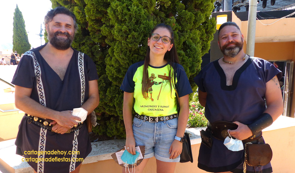 Aníbal e Himilce rubrican con su amor un matrimonio de estado entre púnicos e íberos. Tendrá lugar en el Parque Torres esta noche. En la foto se observa a Alfonso Sánchez, Laura García de las Bayonas López y Jesús Fernández Fernández, que son quienes dirigen los actos oficiales púnicos.