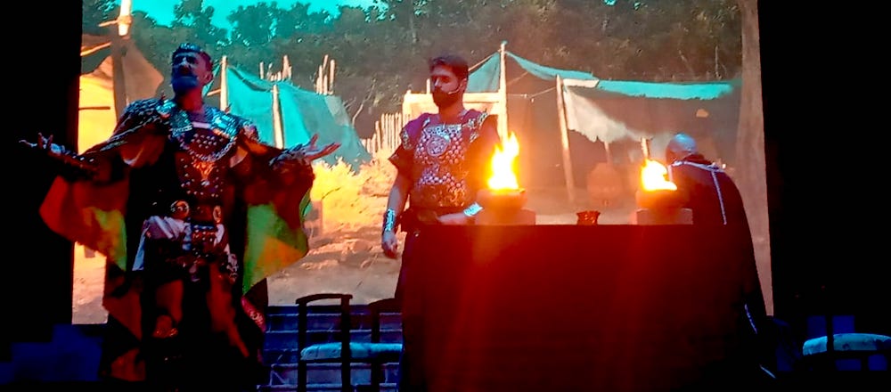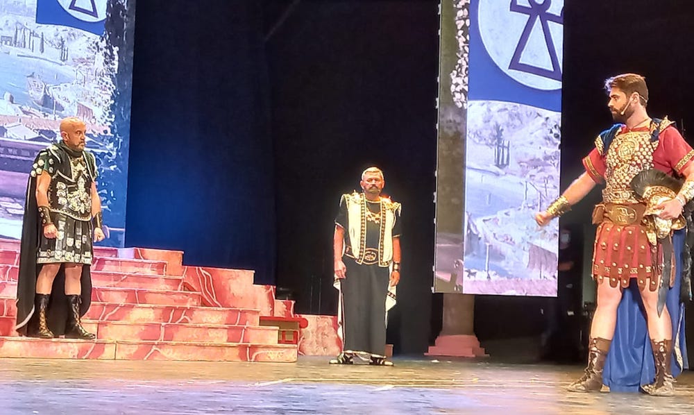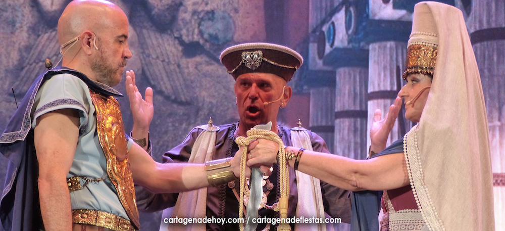 Aníbal (Víctor Nieto), al igual que su predecesor al frente de Qart-Hadast, Asdrúbal, también utilizó la vía de los matrimonios de estado para establecer alianzas con los pueblos íberos. Es el punto de partida de la obra que ha puesto en escena el Consejo Carthaginés bajo la dirección de Jesús Fernández en el escenario del auditorio ‘Paco Martín’ del Parque Torres, que ha registrado, quizás, la mejor entrada desde que comenzó el Annus XXXII de Carthagineses y Romanos, con un público entregado que ha aplaudido reiteradas veces la interpretación de los actores-festeros.