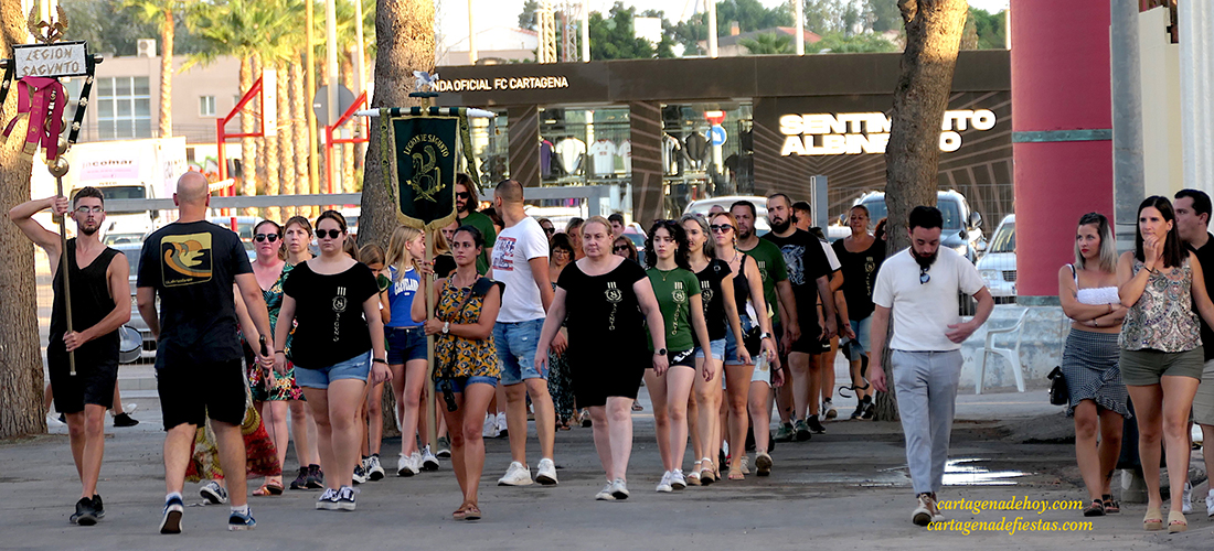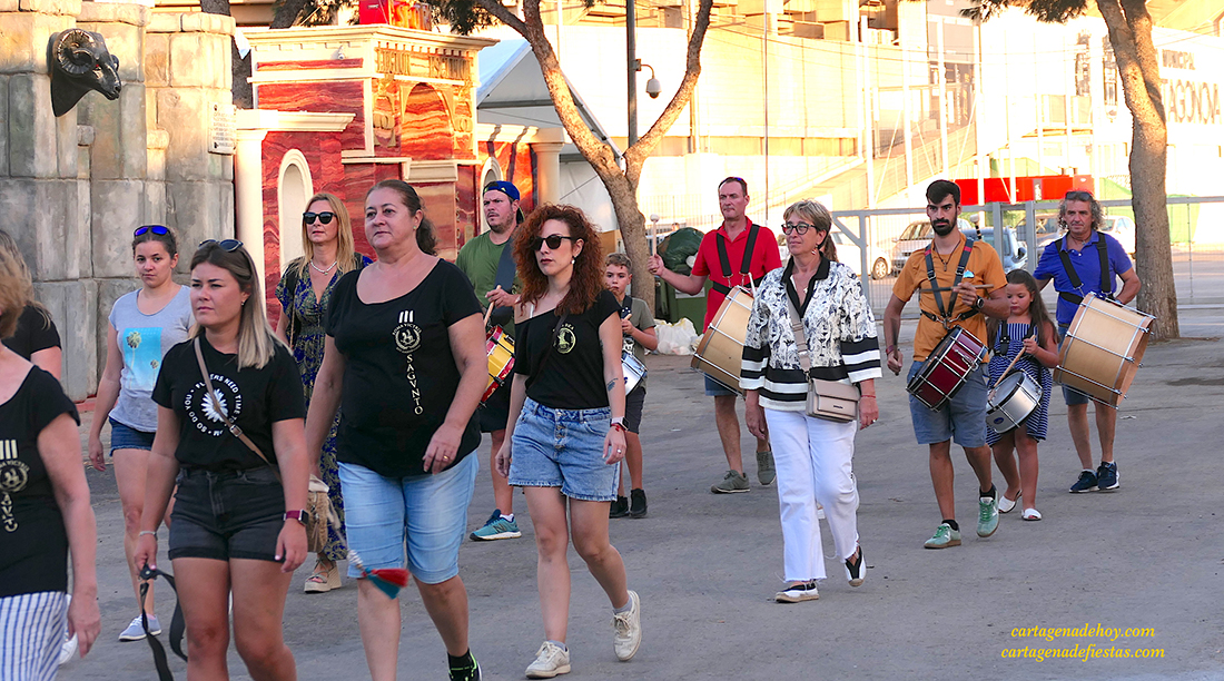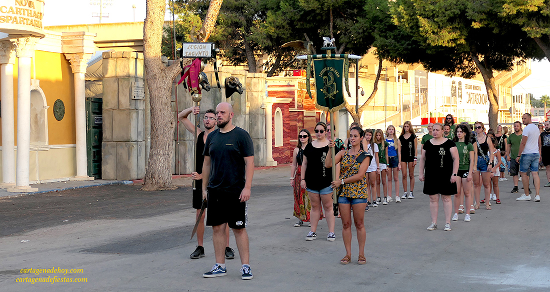 Algunos grupos, como se observa a Legión de Sagunto en estas fotografías, están llevando a cabo, a golpe de tambor, sus ensayos de formación en el interior de la gran ciudadela de Carthagineses y Romanos, cuyo montaje está muy avanzado, generándose entre ambas circunstancias unas sensaciones muy festeras para los que allí se encuentran.
