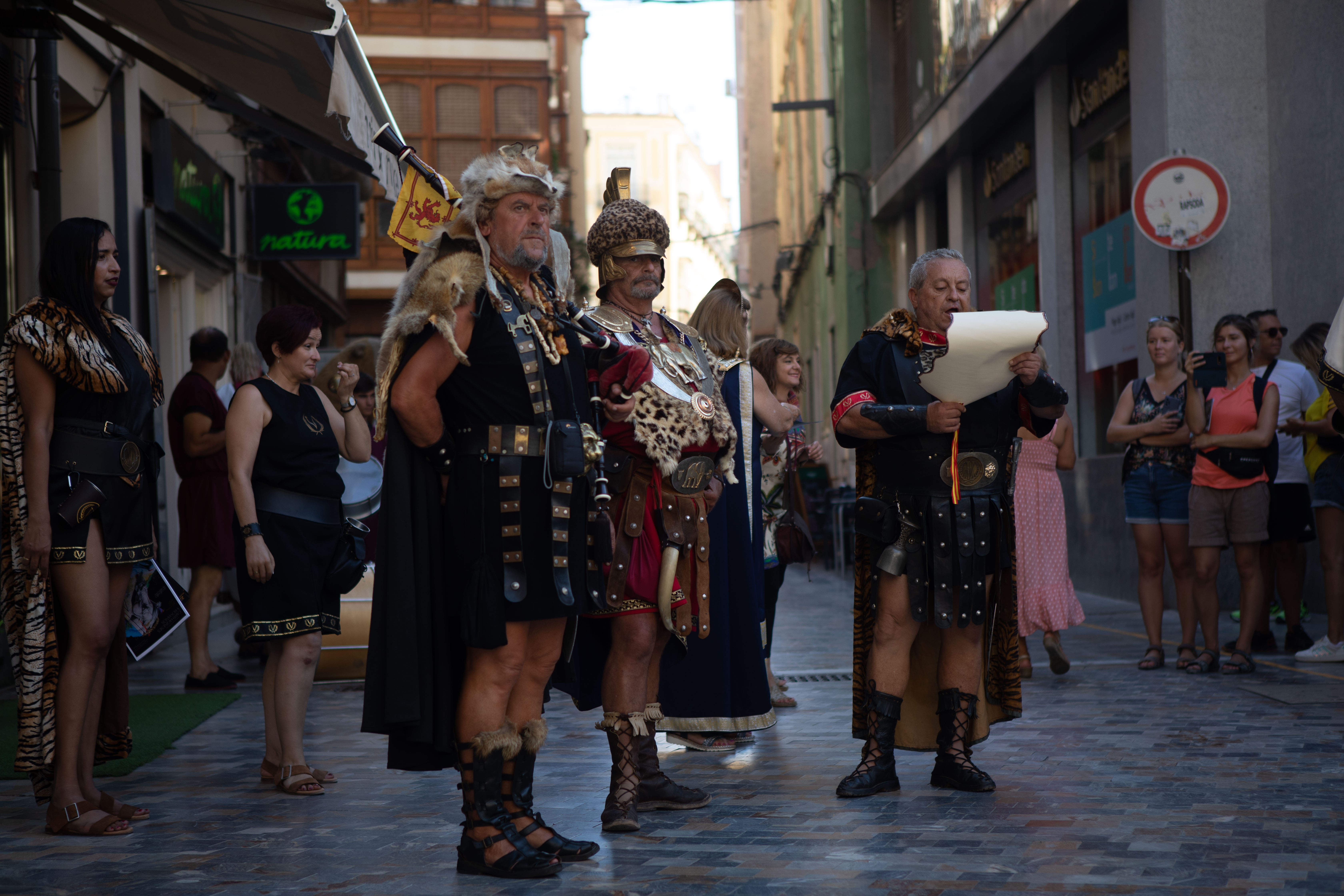 Al son de los tambores, los personajes vestidos de época leían un manifiesto con típico humor satírico de estos actos en el que han incluido aquellos temas de importancia durante este año. Desde la situación del Mar Menor hasta la pandemia. Extranjeros y locales, amigos y familiares se acercaron al escuchar el ruido de los tambores y,  aprovechando esta expectación, han repartido programas de las fiestas invitándoles a formar parte.