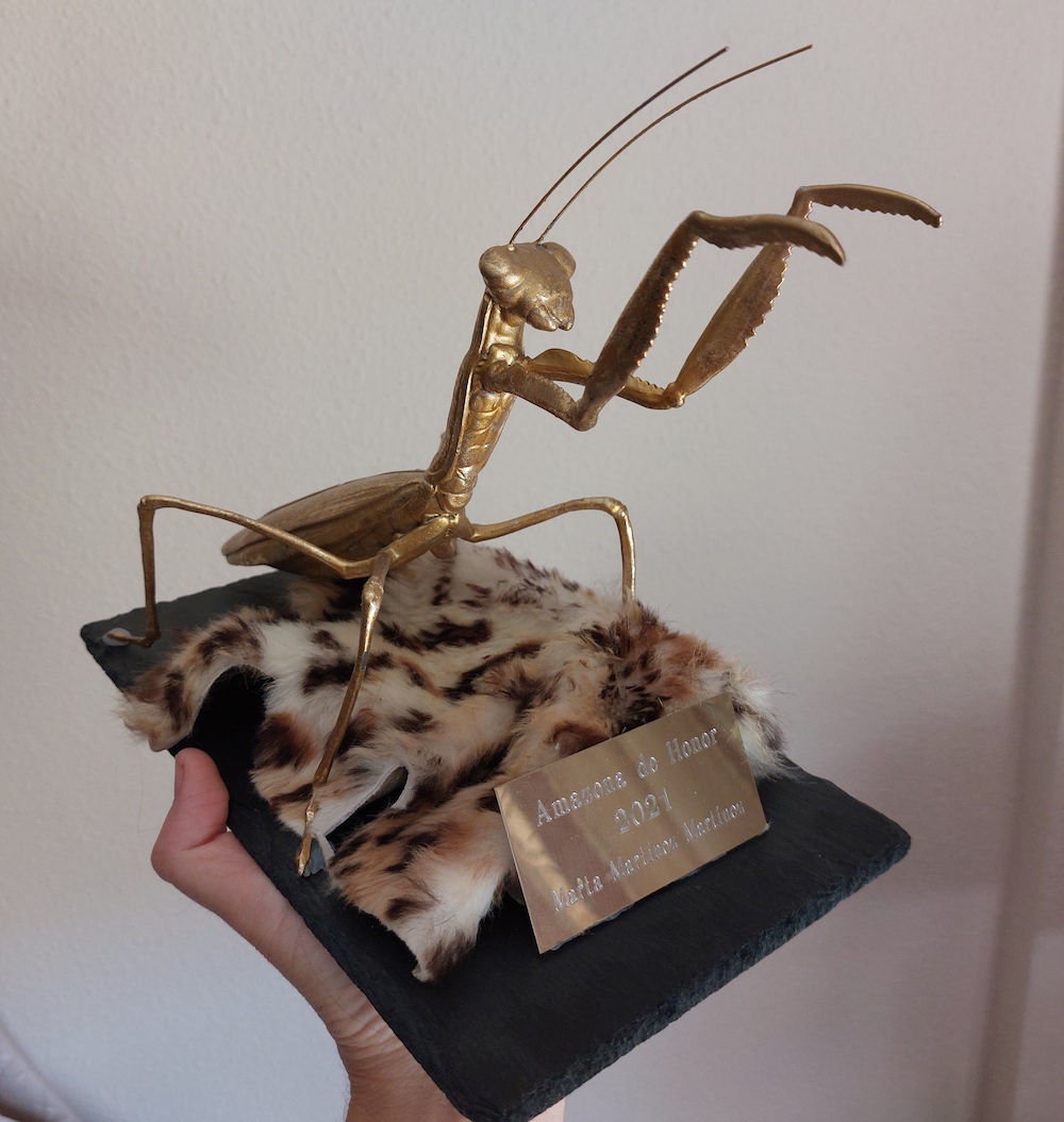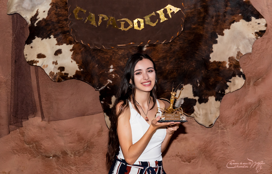 La única legión exclusivamente femenina de Carthagineses y Romanos entregó su décimo séptimo galardón destinado a mujeres que dejan huella en Cartagena a la joven dibujante de ya extenso palmarés, en un acto que tuvo lugar en su recinto de campamento y que fue presentado por María, presidenta del colectivo y que encarna a la sacerdotisa, acompañada por la reina Penthesilea.