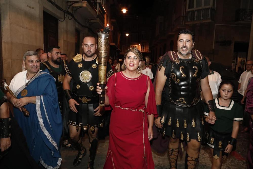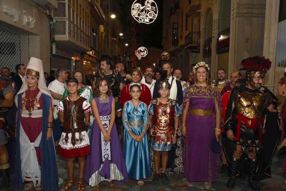 Tras concluir el acto del pregón y explotar en el cielo los fuegos de artificio, la ciudad de Cartagena volvió a acoger el tránsito de los festeros, encabezados por los personajes principales, las autoridades y los dirigentes festeros, hacia el campamento.