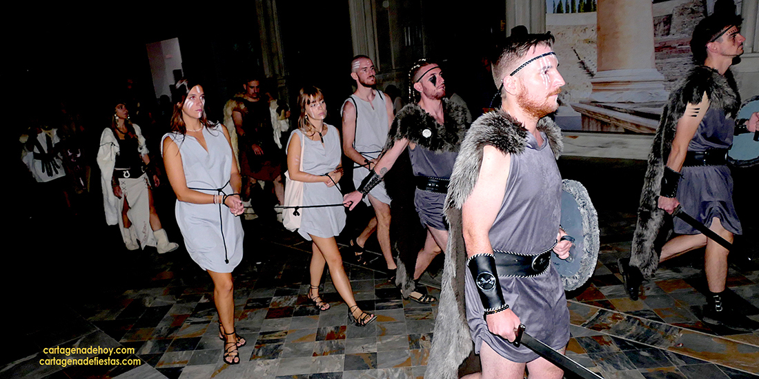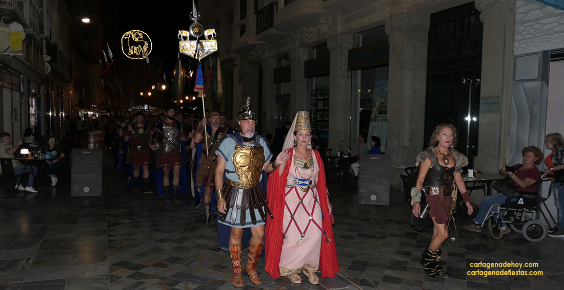 Además de los desfiles oficiales que tendrán lugar del jueves al sábado, casi a diario hay marchas de carthagineses o romanos desde el puerto de Cartagena hasta el campamento festero tras concluir las representaciones teatrales.