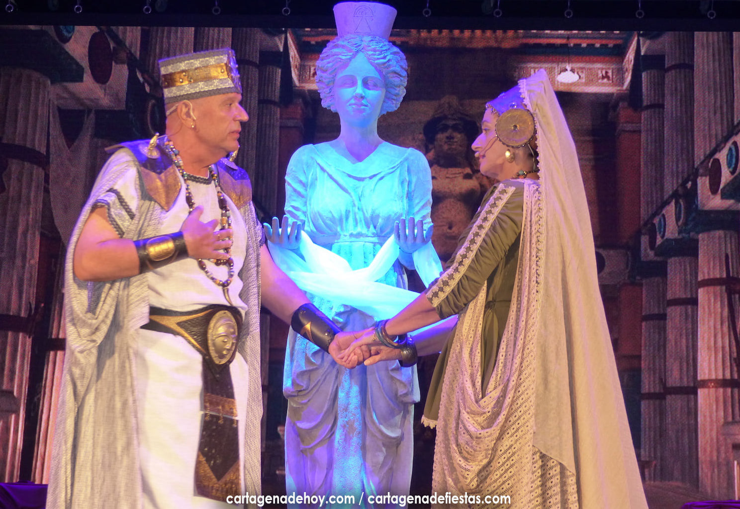 Los actos de las Fiestas de Carthagineses y Romanos del puerto pasan a Plaza Mayor con una propuesta muy similar a la anterior edición, repitiéndose la batalla infantil tras el exitoso estreno y regresando el Oráculo al Parque Torres (foto adjunta). El senado no ha conseguido recuperar el circo y por segundo año consecutivo no hay ‘ajedrez viviente’. Entre las actividades paralelas, son novedades un concierto de bandas locales en la explanada del campamento y un caldero solidario. Se mantiene la ruta motera ‘Centímetros púnicos’.