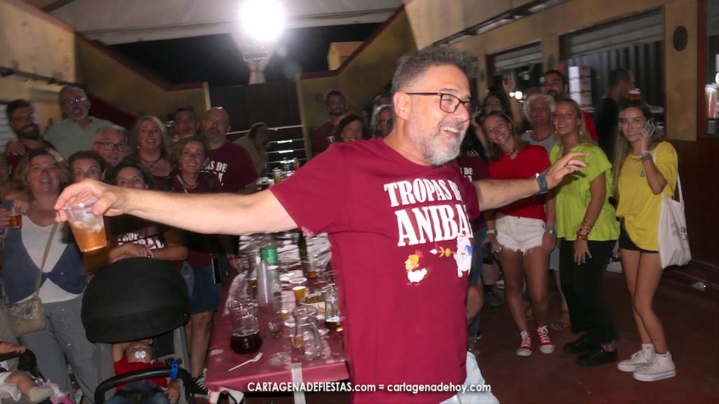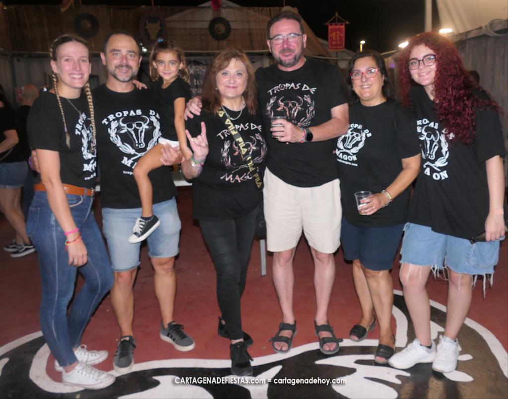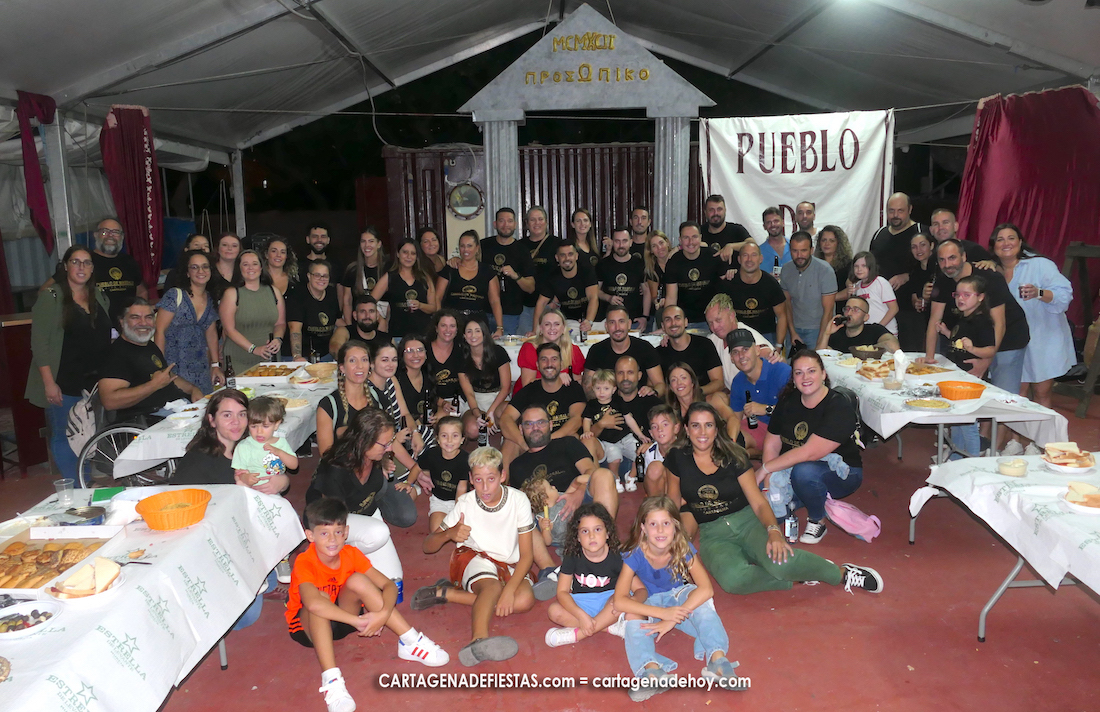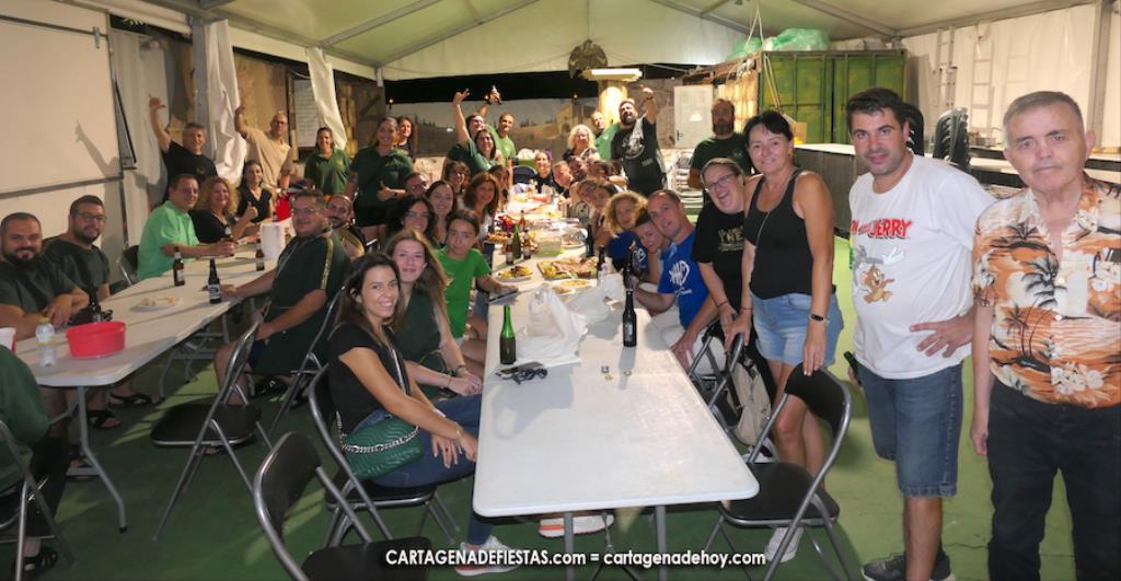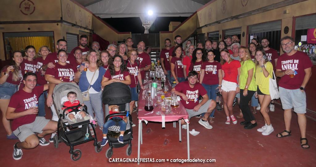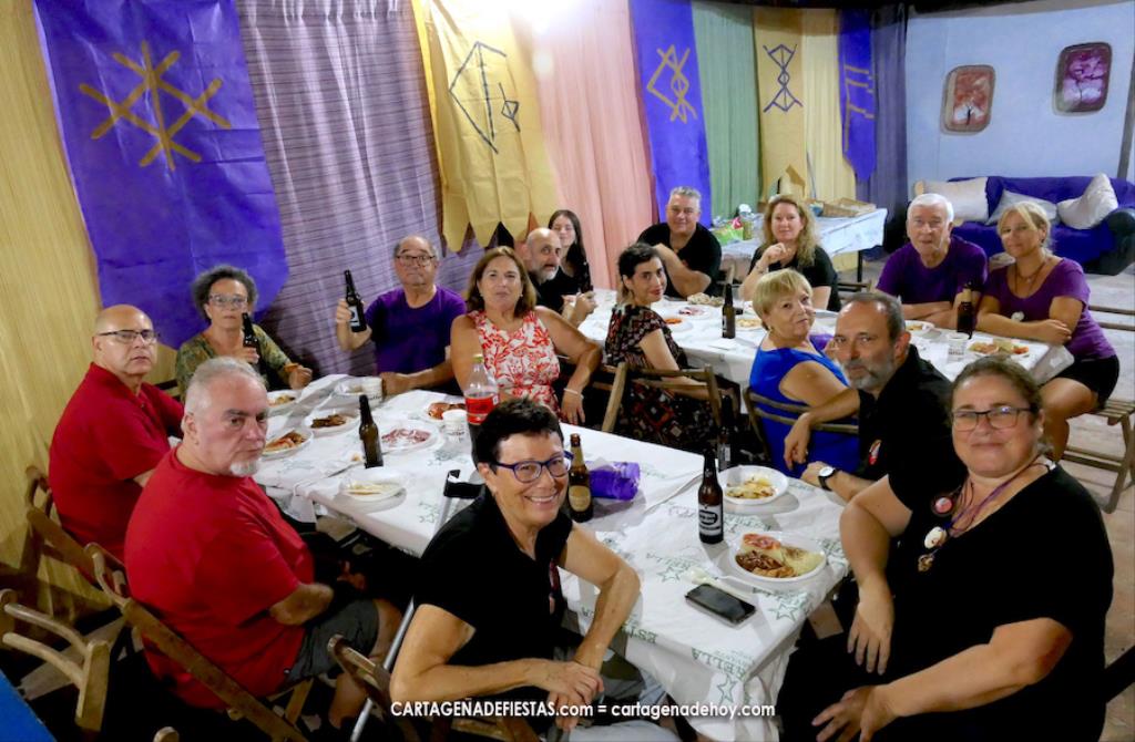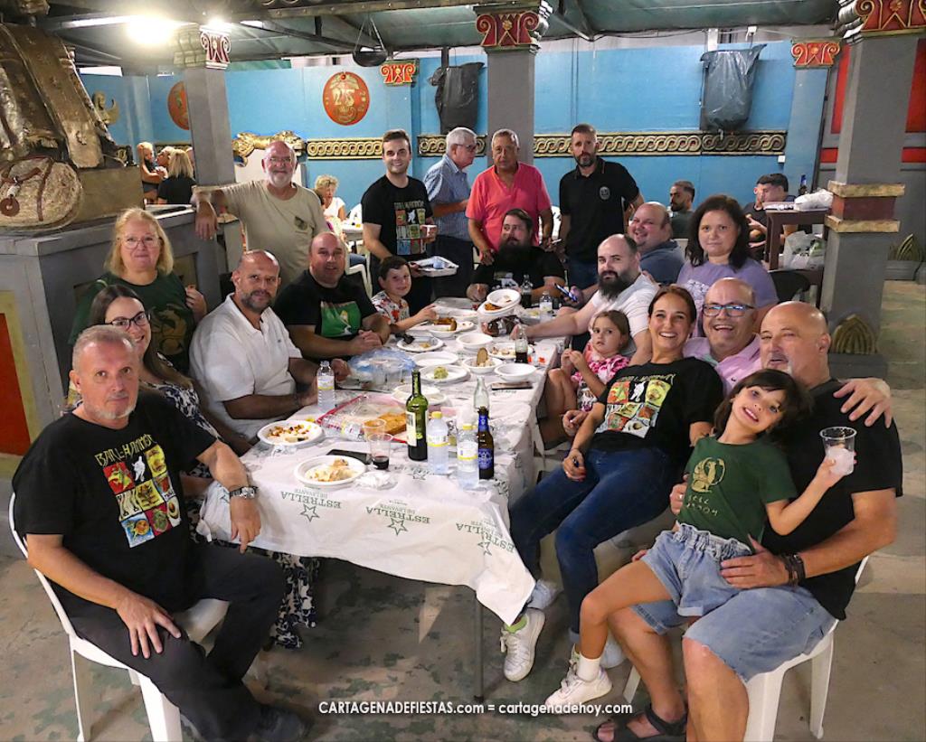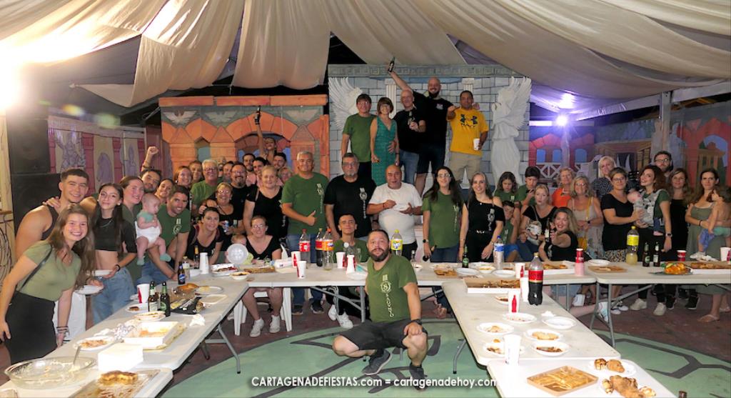 La noche previa al inicio de las fiestas de Carthagineses y Romanos atrae al campamento a todos los grupos para compartir cenas de hermandad para celebrar el final del trabajo de montaje. Pueblo de Massalia fue el primer grupo que decidió hacerlo hace muchos años y después se sumaron todos los demás. Ahora es una noche 'casi festera', en la que ayer contó con más gente que nunca, lo que refleja el auge del alistamiento en tropas y legiones para esta edición.