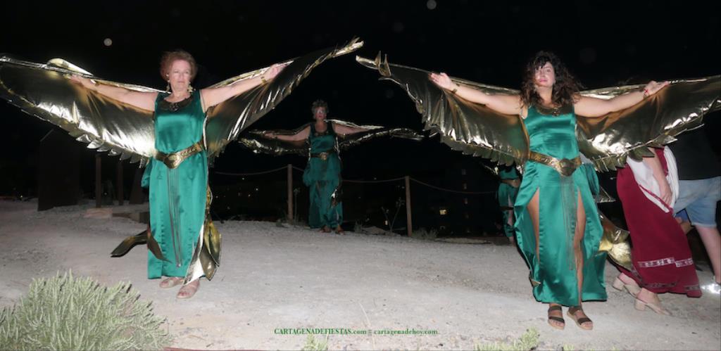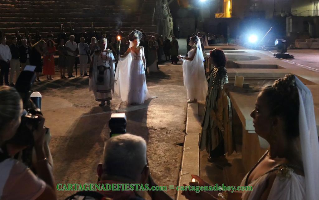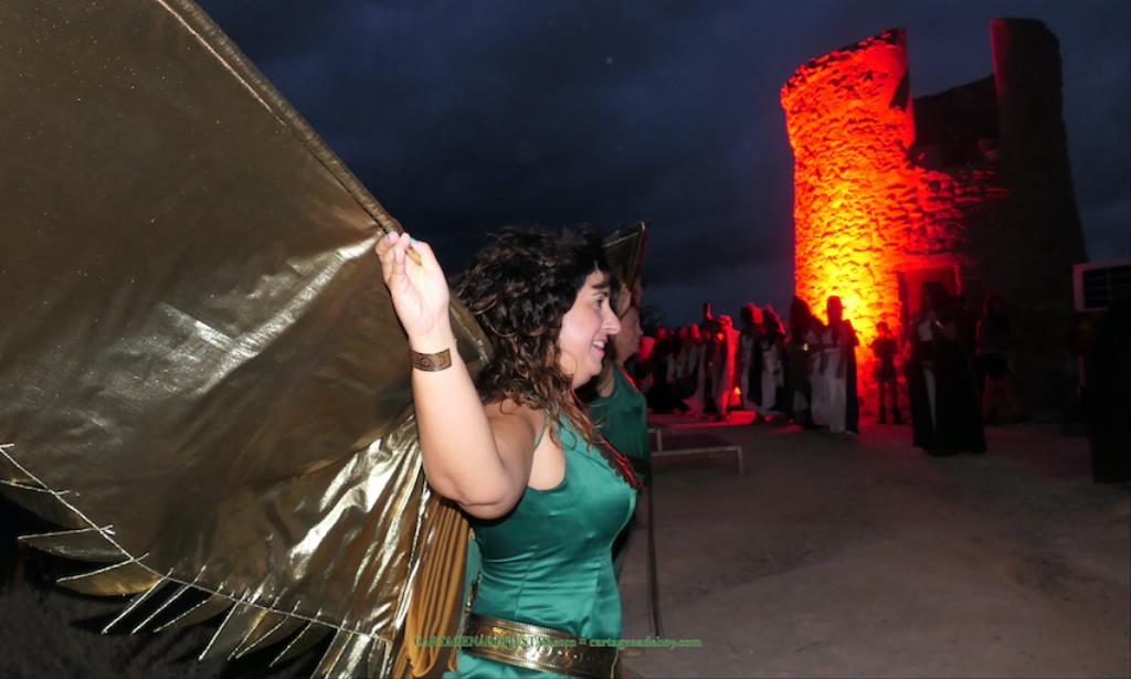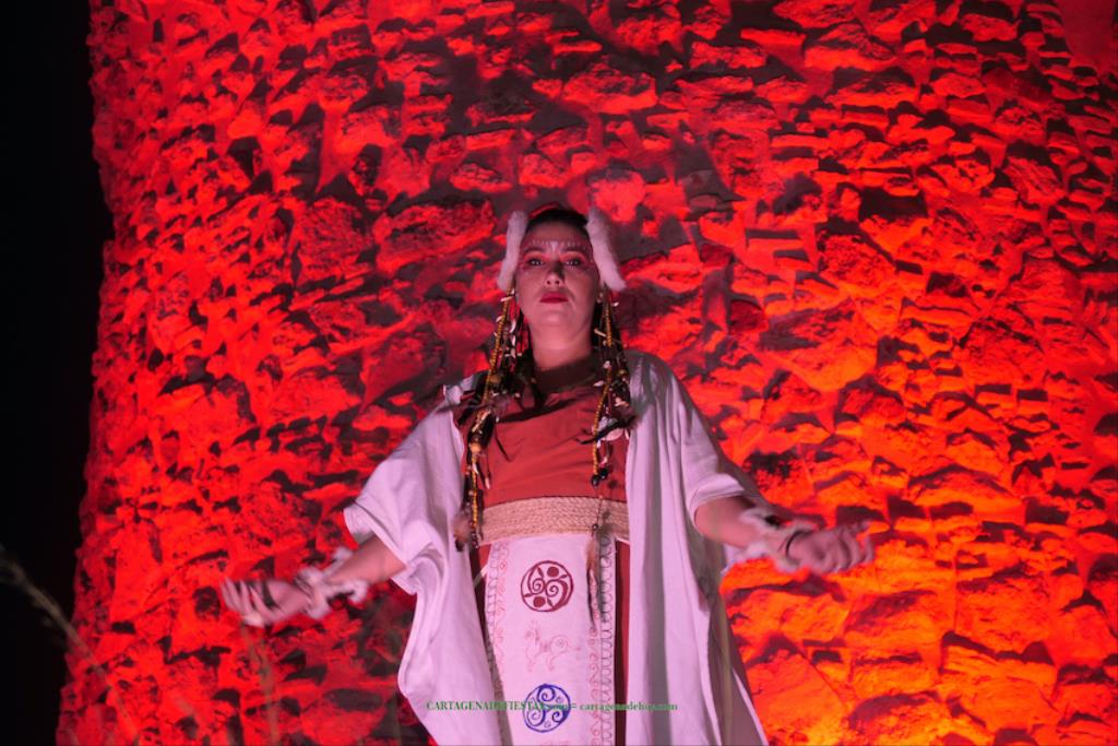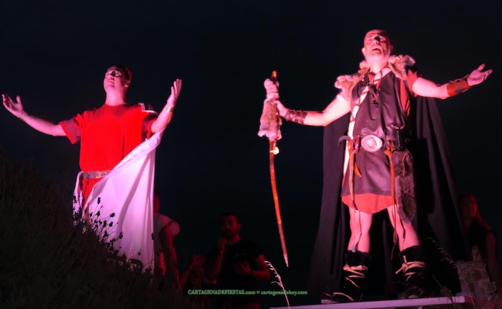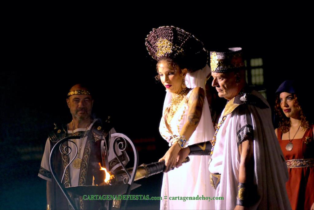 La llamada sagrada ha llegado al Molinete, donde ha aparecido sin invitación 'Eolo', el dios del viento, pero, aunque ha apagado varias veces el fuego, no ha conseguido deslucir un ágil y bello acto de inicio de Carthagineses y Romanos, que después se ha enriquecido con otro en el Teatro Romano.