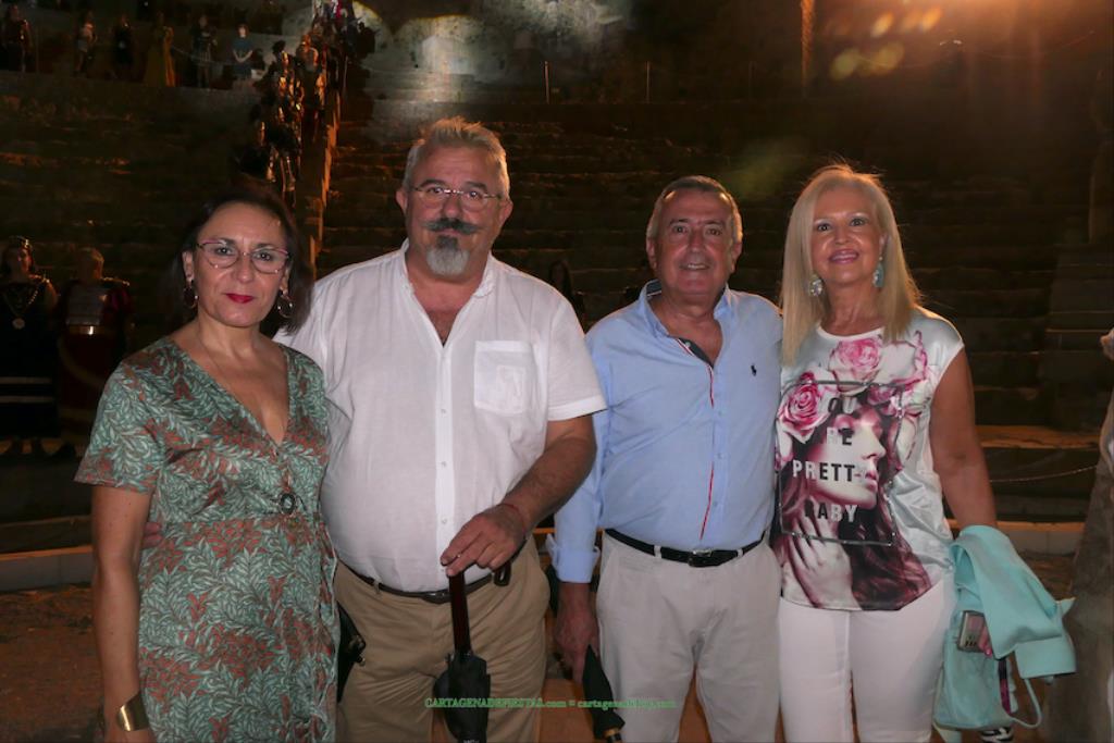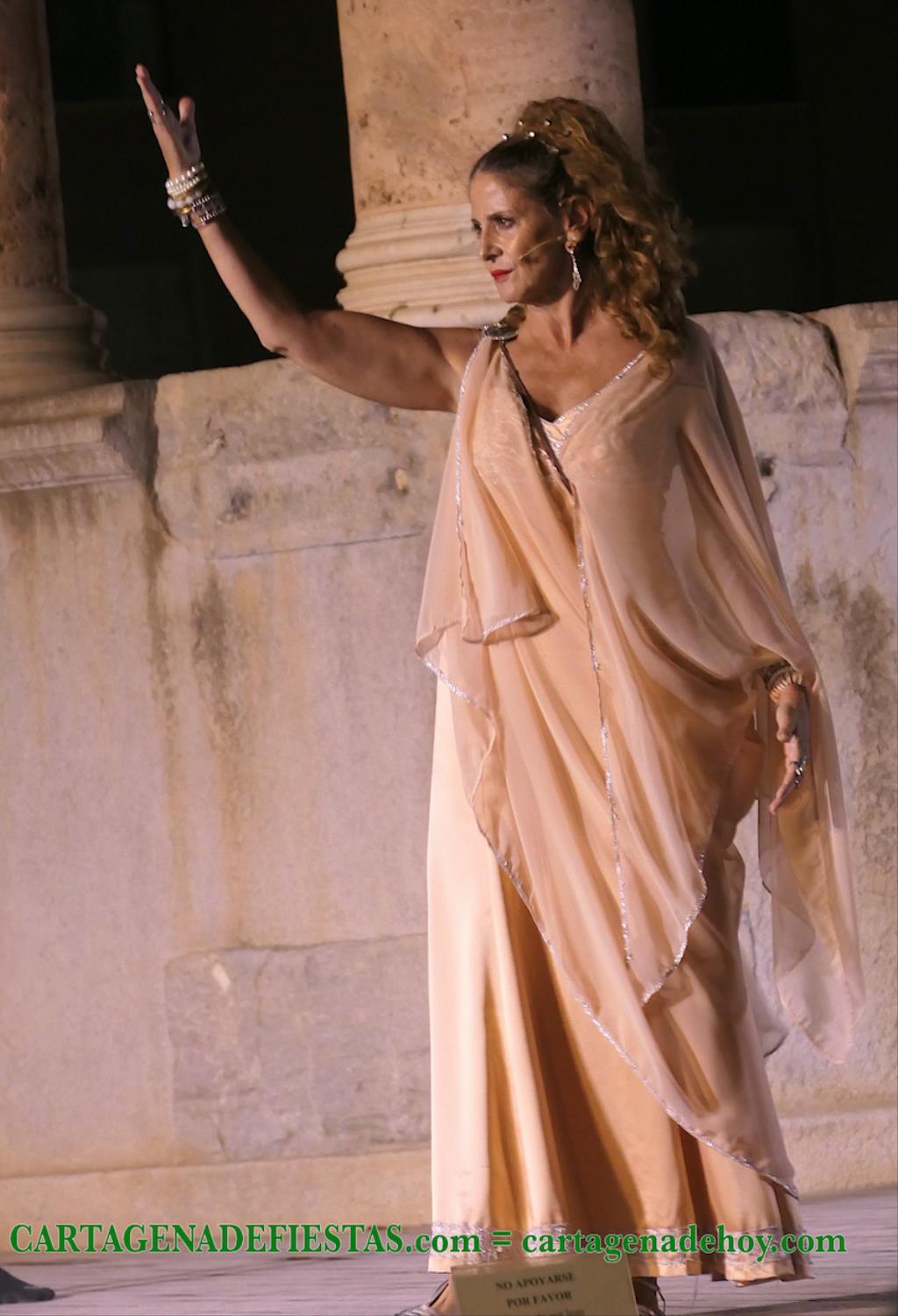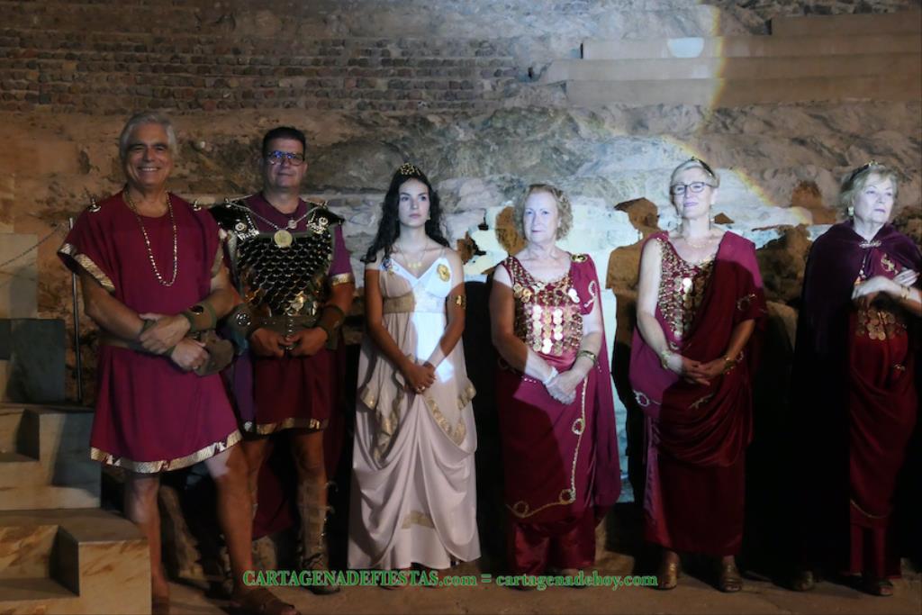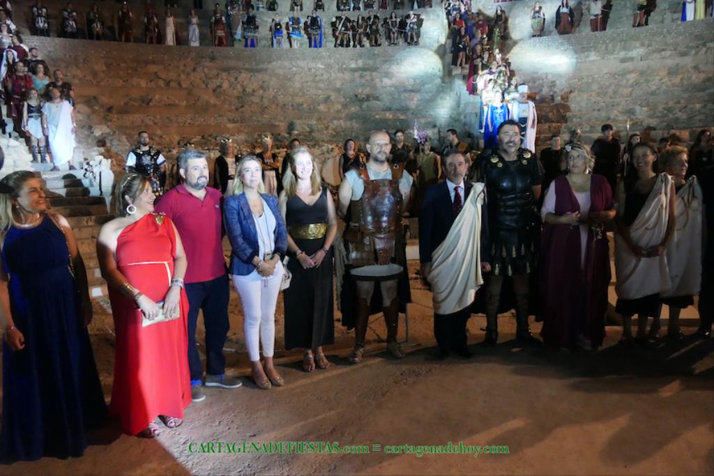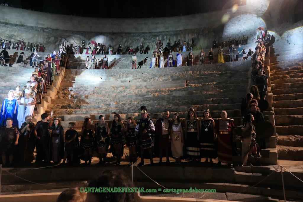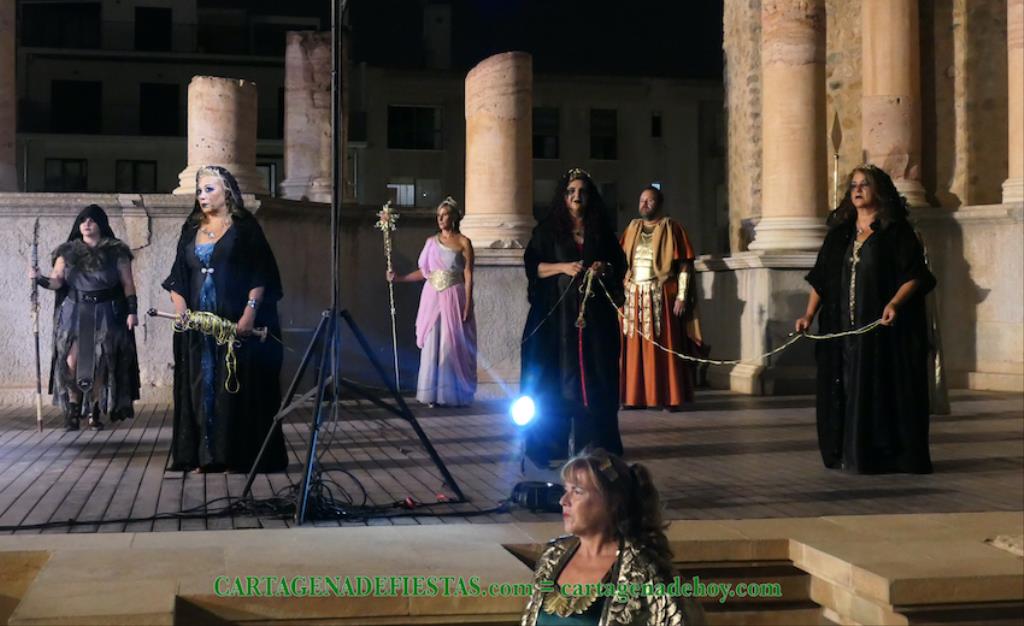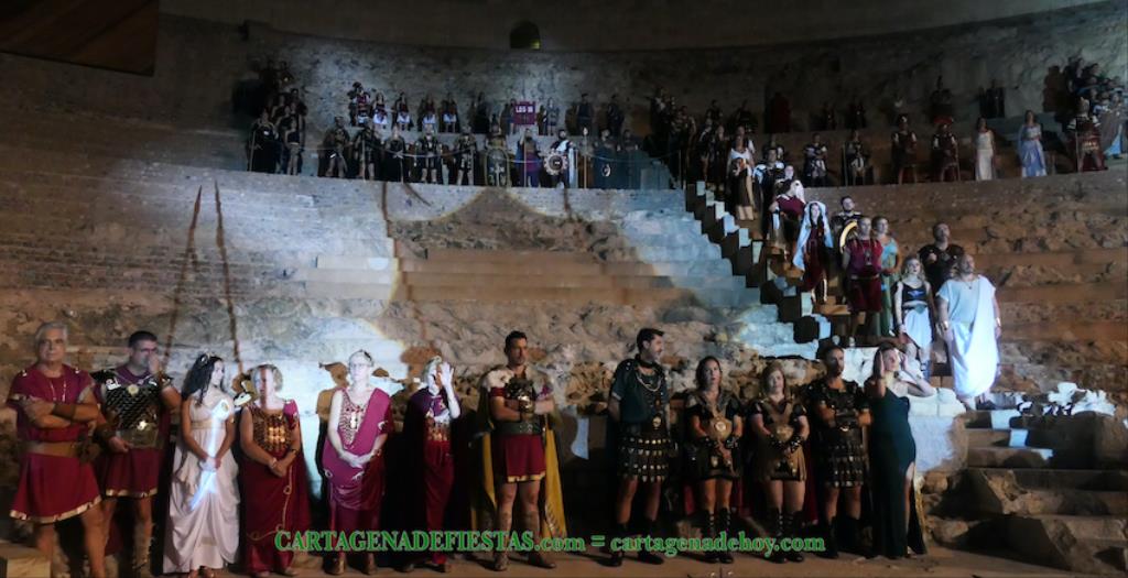 El punto de destino era el Molinete (Mons Arx Asdrúbalis) donde se ha encontrado con un cielo cargado de rayos y ráfagas de fuerte viento que ha provocado que, al menos tres veces, hubiese que volver a encender la llama. Por cierto, también 'Eolo' ha fastidiado algunos encendidos de las otras cuatro colinas. Allí, junto a las ruinas del molino, muy llamativo con el torno rojizo aplicado por los focos, ha tenido lugar un ágil acto en el que se ha dado la bienvenida al fuego, para después una sacerdotisa encender el pebetero que custodiaban los lanceros hoplitas, mientras que una amplia representación de tropas y legiones formaban un círculo alrededor de una escena contemplada por muchos cartageneros y visitantes. Muy bien organizado ha estado este capítulo.