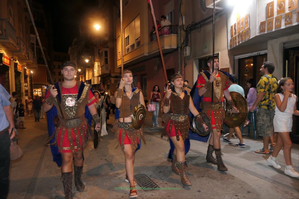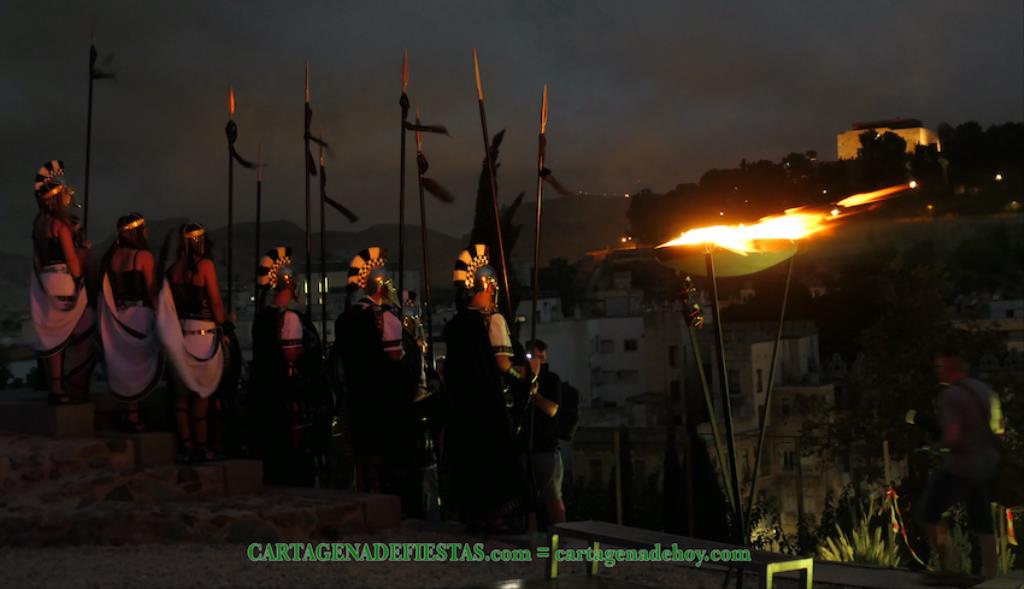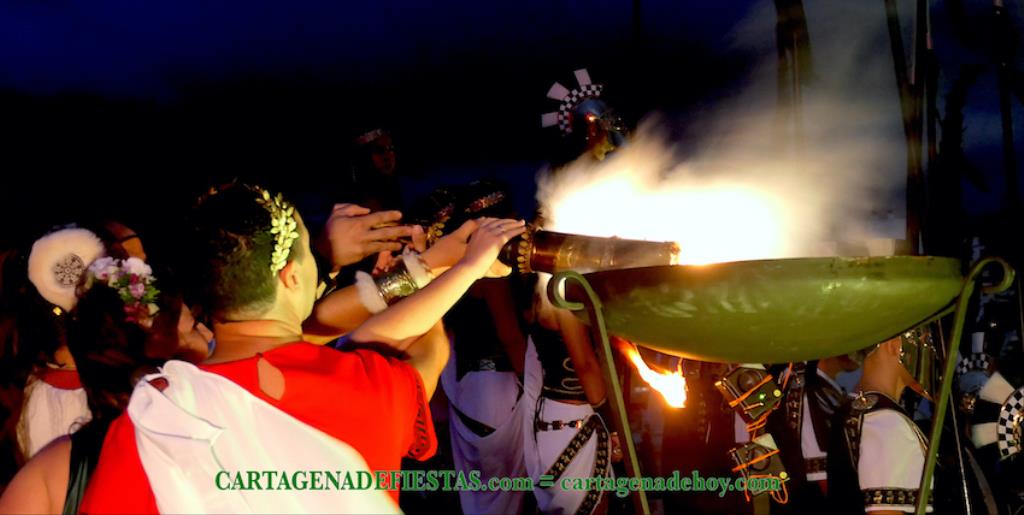 A la una y media de la tarde, y dentro de la política de acercamiento a los municipios vecinos establecida por la directiva de la Federación de Tropas y Legiones, ha salido desde la bahía de Mazarrón el fuego sagrado, con un primer tramo terrestre y marítimo, para después coger la ruta del oeste cartagenero donde la antorcha ha sido llevada por voluntarios pasando por Tallante, Cuesta Blanca, Molinos Marfagones y San José Obrero hasta la urbe que en su día fue codiciada por cartagineses y romanos.