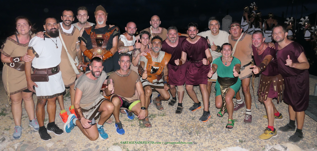 La foto muestra a una amplia representación del grupo de voluntarios que llevó la llama sagrada de las Fiestas de Carthagineses y Romanos desde Mazarrón hasta el Molinete en el denominado ‘Iter Ignis’ (camino del fuego).