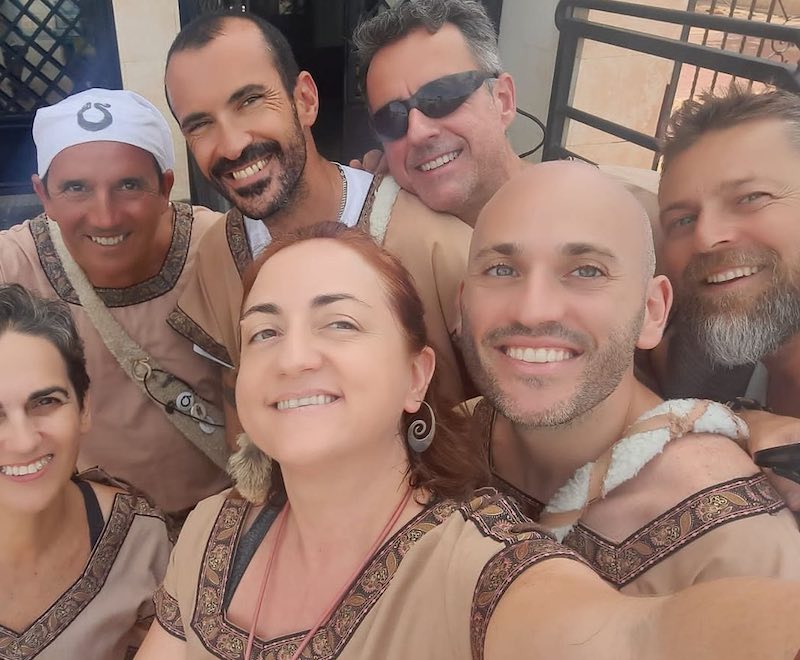 Entre los portadores de ayer, como se observa en la foto captada al llegar al cerro de Asdrúbal, estaba el portavoz municipal de Movimiento Ciudadano, Jesús Giménez Gallo. También hay que mentar a Julio Guillamón, quien encarna a Aníbal en estas fiestas y que estuvo en un tramo del inicio con la antorcha, para después viajar rápido a Cartagena para vestirse de época al ser uno de los protagonistas de la jornada inaugural. En la foto se le ve a la derecha del lector con compañeros de su tropa de Honderos Baleares.