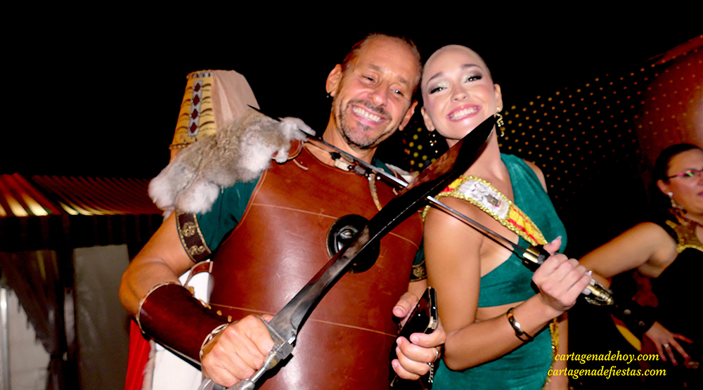 Las Fiestas de Carthagineses y Romanos y las del Carnaval de Cartagena han mostrado el 'buen rollo' que tienen. En la foto, Virginia Villada, reina carnavalera de este año, posando con la tropa de Mercenarios de Lobetania y la alcaldesa de Cartagena, Noelia Arroyo.