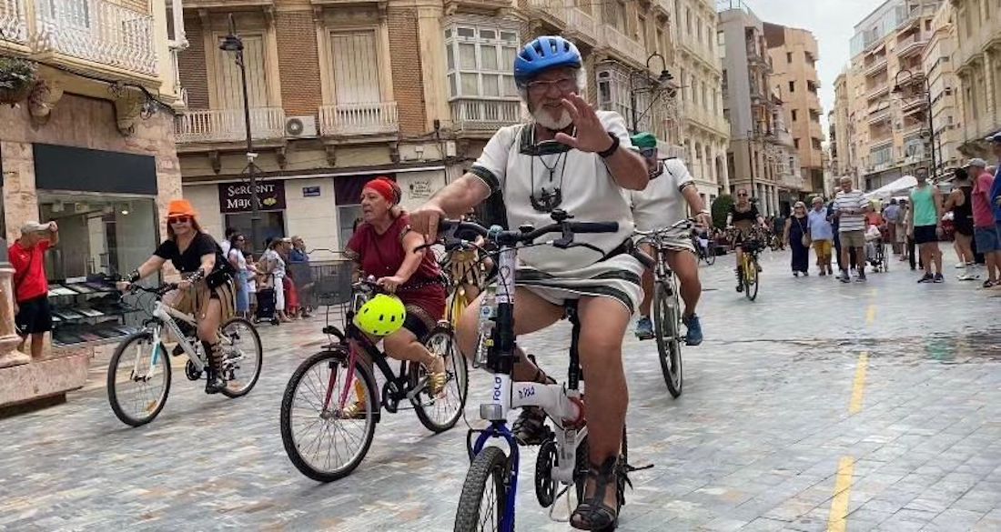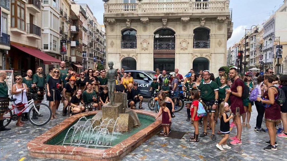 La 'Bici-romana' ha reunido a varias decenas de festeros en su recorrido urbano por la trimilenaria ciudad, con salida y regreso al campamento. Ha llegado a su décimo aniversario y parece estabilizarse en la mañana del sábado dentro del programa de Carthagineses y Romanos.