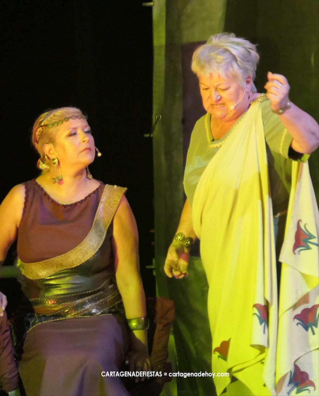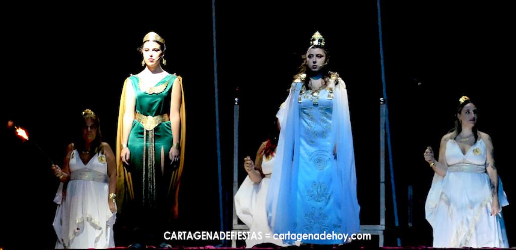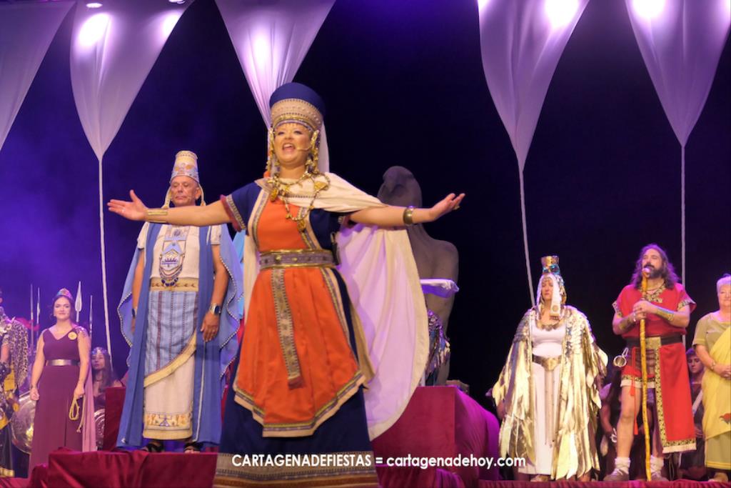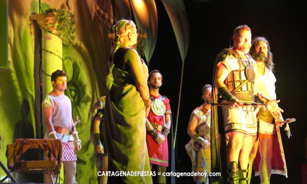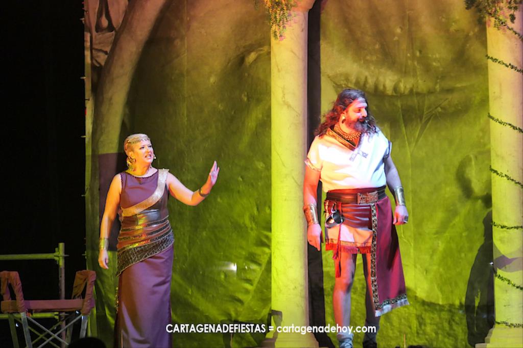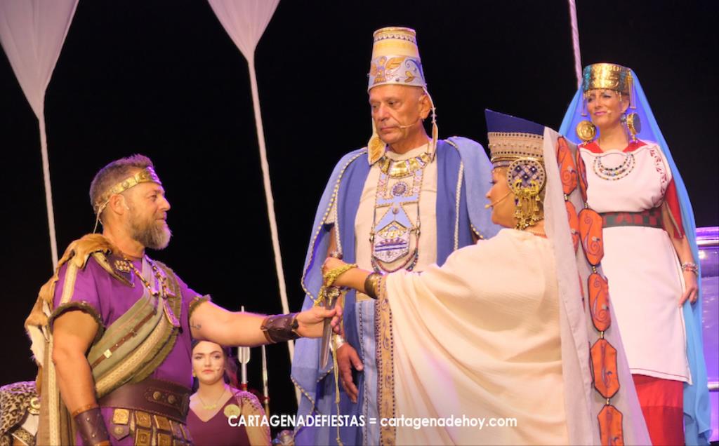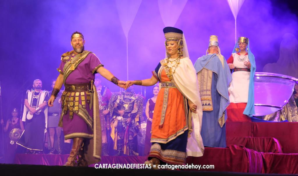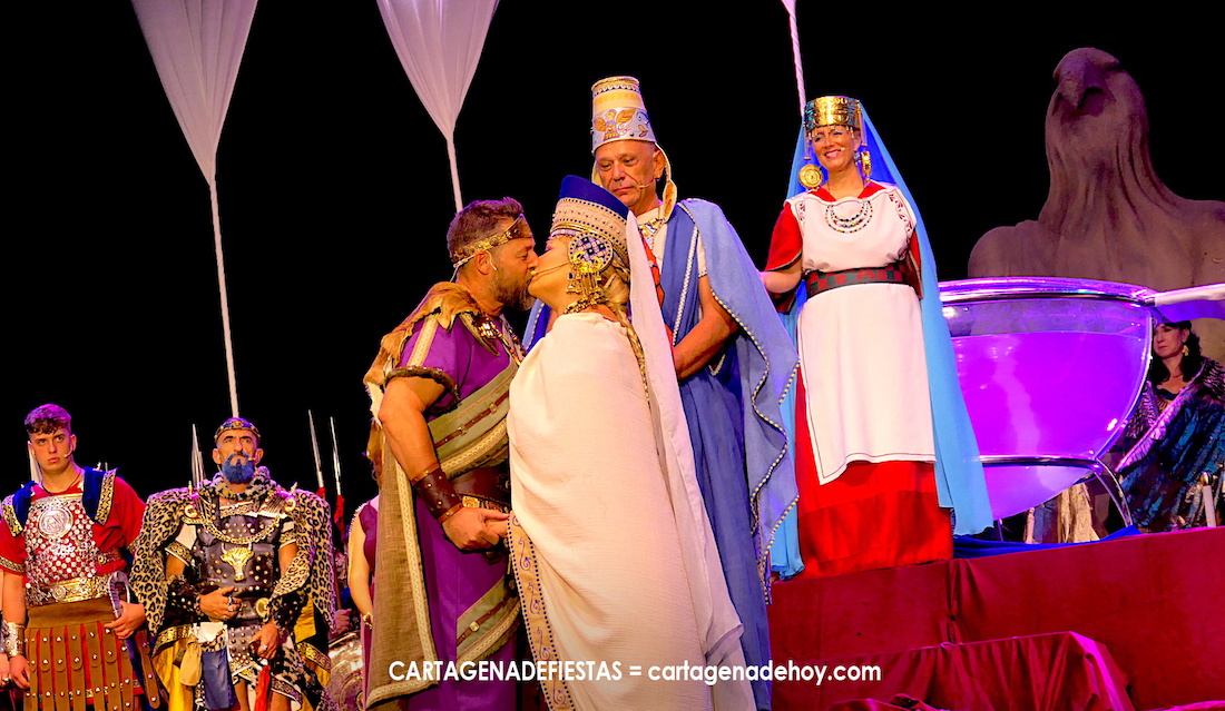 Julio Guillamón y Esther Escolar se estrenaron en el clásico carthaginés de las 'Bodas de Aníbal e Himilce' plasmando en la escena la química que existe entre ellos dentro de una obra que estrenó la dirección de Adrián Quiñones y una escenografía y desarrollo que gustaron al público que abarrotó las localidades, siendo una muy grata sorpresa una danza acuática.