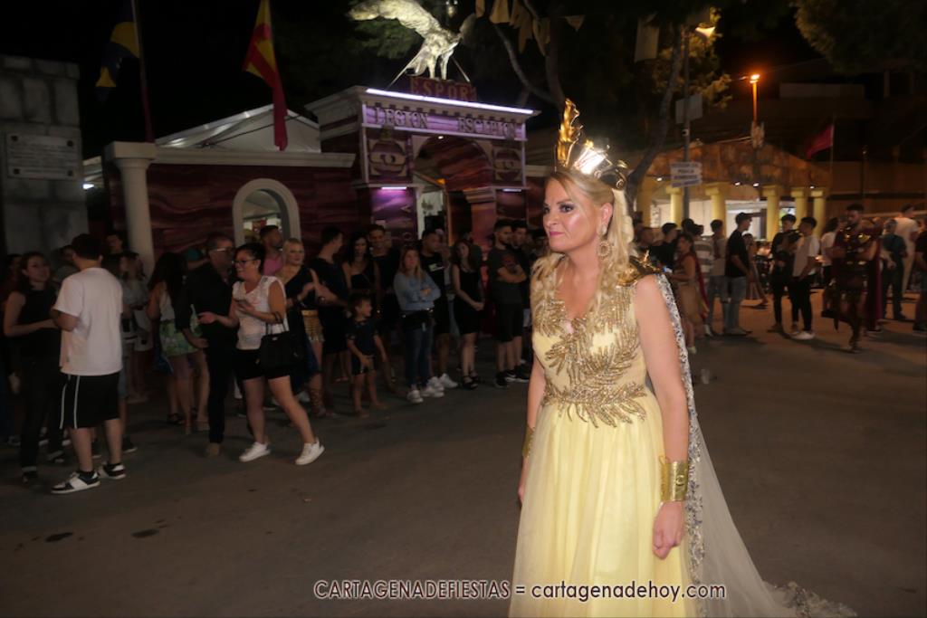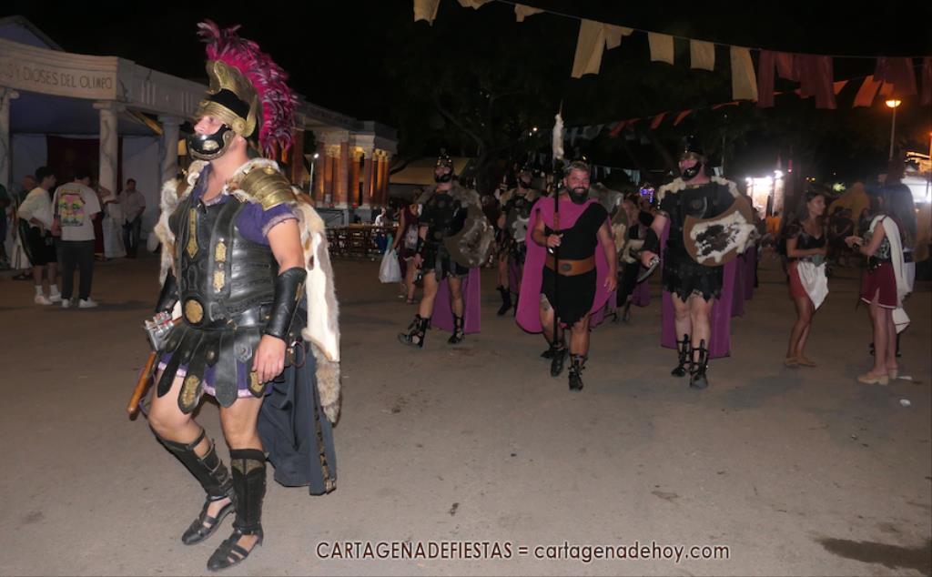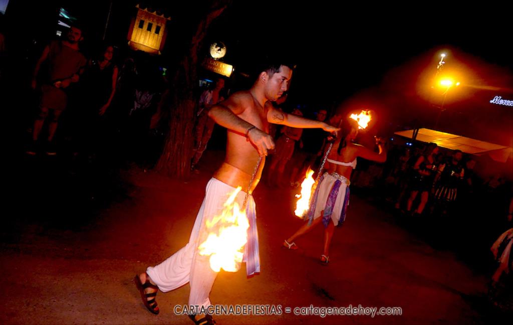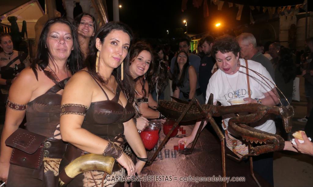 Los atractivos paralelos no acabaron ahí, pues también se incluyen el novedoso lanzamiento de hacha y la espectacular entrada de Fuerzas de Choque Extraordinarri a su recinto de campamento entre marcialidad y antorchas de fuego rojo. Luego, sobre el escenario de la vía romana, tuvieron lugar la boda de Venus y Vulcano (tendrá un articulo propio) el sacrificio de un esclavo por parte de las amazonas. Más tarde también se sumaron los carthagineses con varias incursiones de tropas por la calle enemiga. ‘Buen apetito, buenas fiestas’.