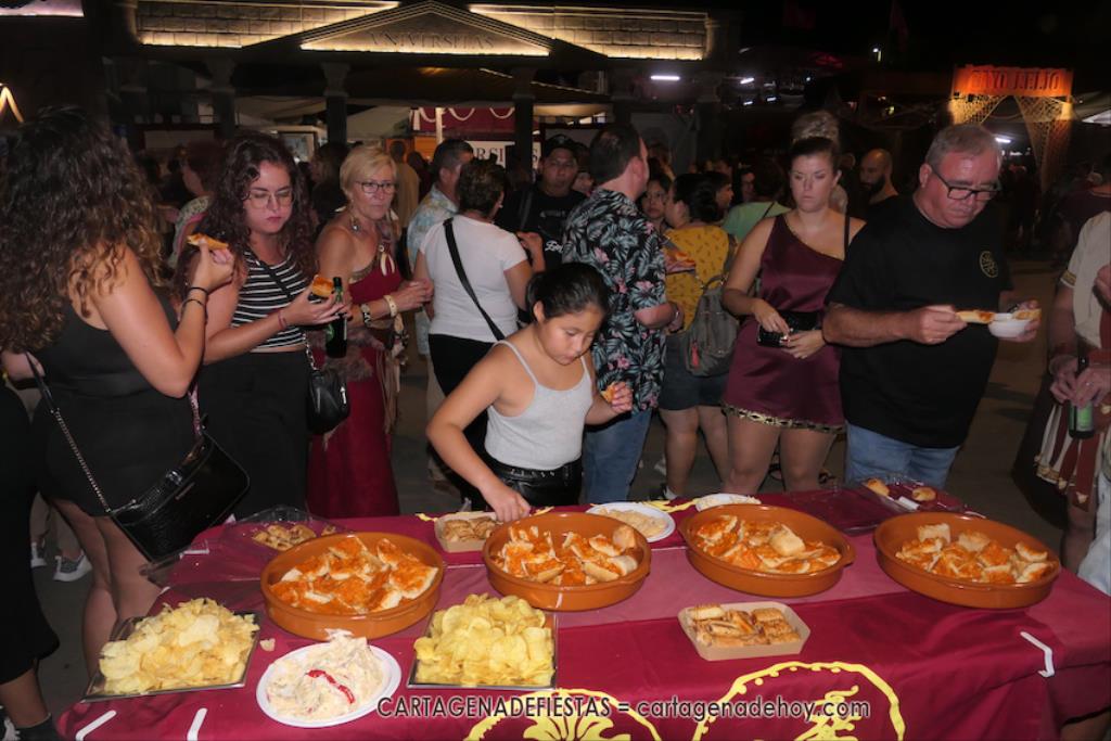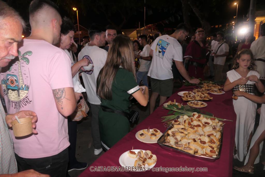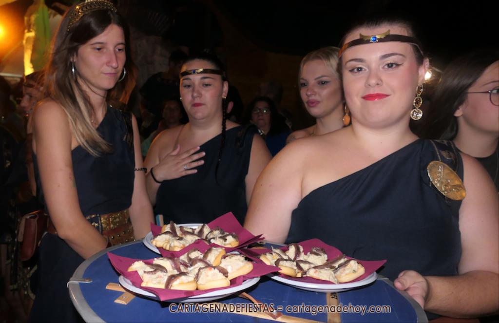 El cartagenero producto con ensaladilla y anchoa se estrenó en el ‘Feriae Latino’ con Legio II Navalis en una noche en la que festeros y visitantes se dieron un festín de época aderezado por animaciones y espectáculos.