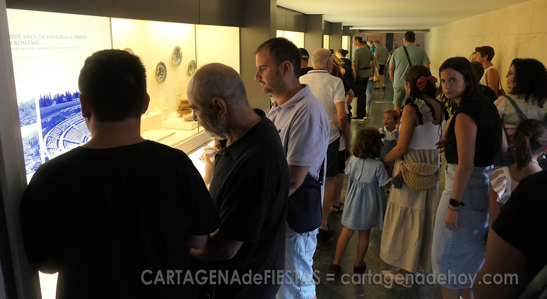 Cartagena de Fiestas (Cartagena de Hoy) ha podido comprobar la masiva presencia de visitantes esta mañana al Teatro Romano, de los que la mitad, según los datos que se están tomando corresponden a vecinos del municipio que aprovechan la ocasión para contemplar la riqueza que en su interior se guarda. Por lo que hemos podido conocer, lo mismo está sucediendo en el Museo del Foro Romano Molinete, la Casa de la Fortuna, el Augusteum, la Muralla Púnica, el Fuerte de Navidad, el Castillo de la Concepción y los Refugios de la Guerra Civi, que son de titularidad del Ayuntamiento de Cartagena.