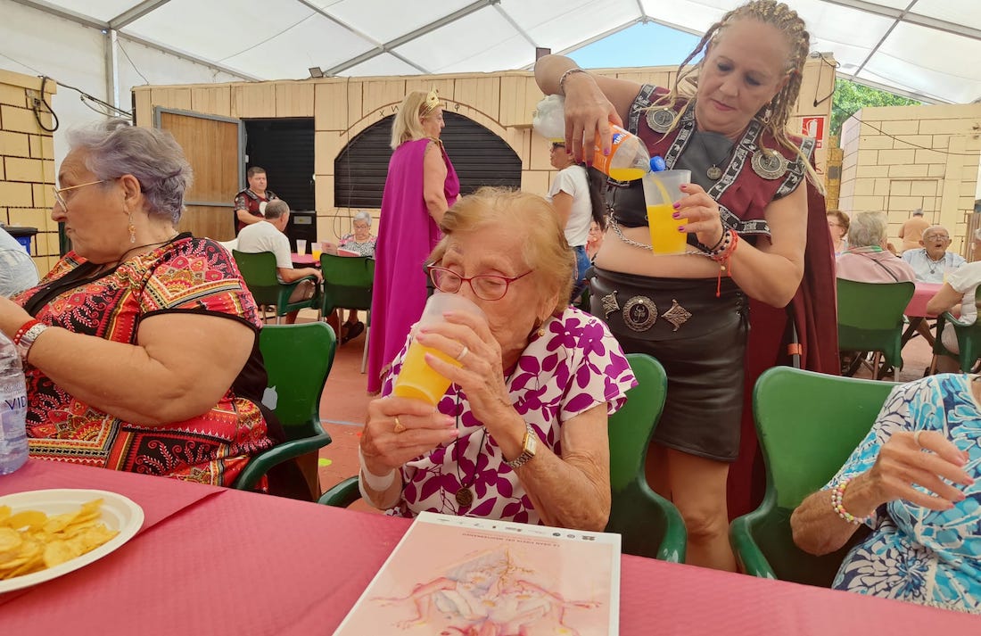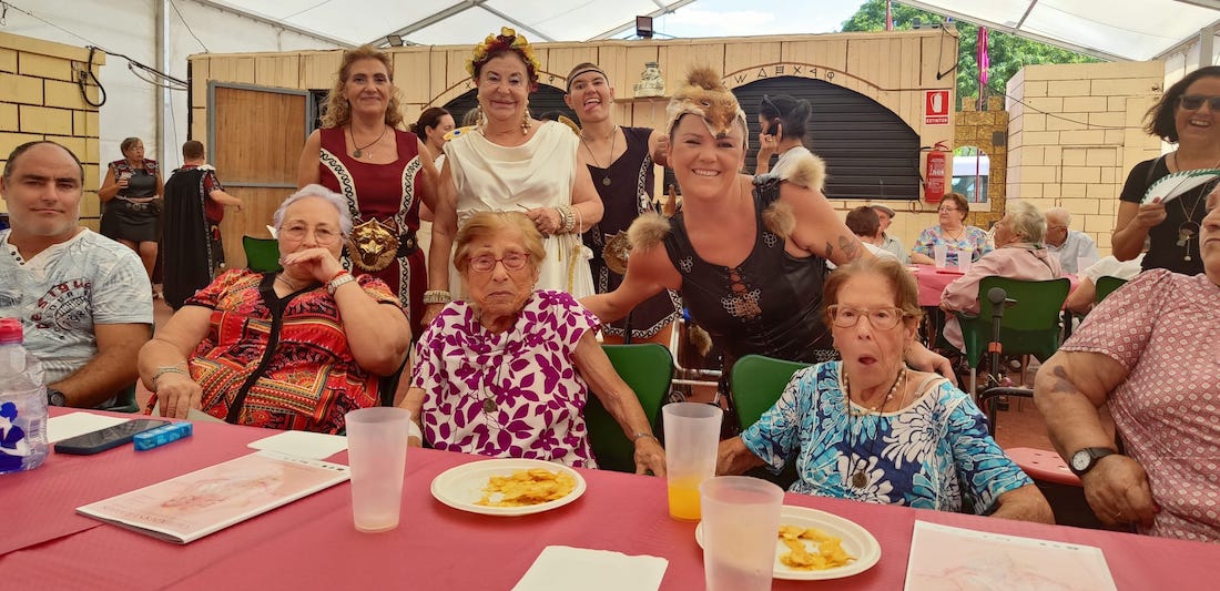 Tropas carthaginesas hicieron de anfitriones de tres grupos de visitantes procedentes de residencias de mayores de Cartagena que visitaron la gran aldea de Carthagineses y Romanos, siendo el recinto de Quart-Hadast (el grupo festero más antiguo) el lugar donde fueron obsequiados con una merienda.