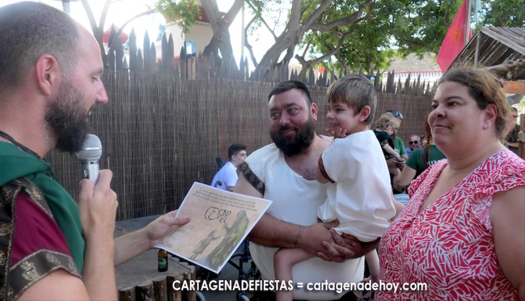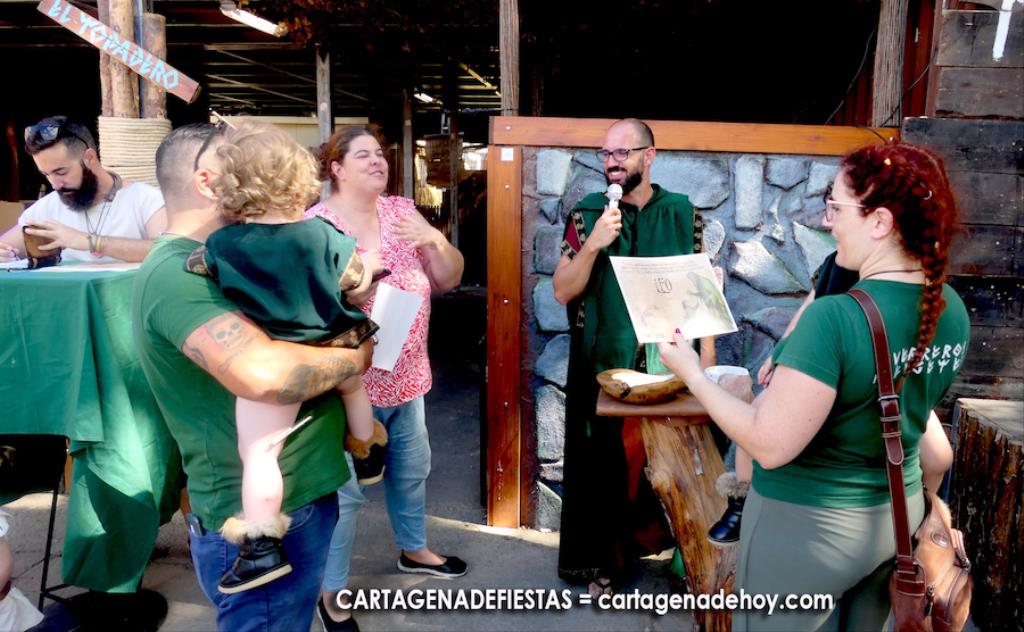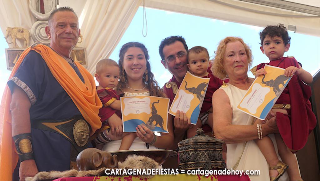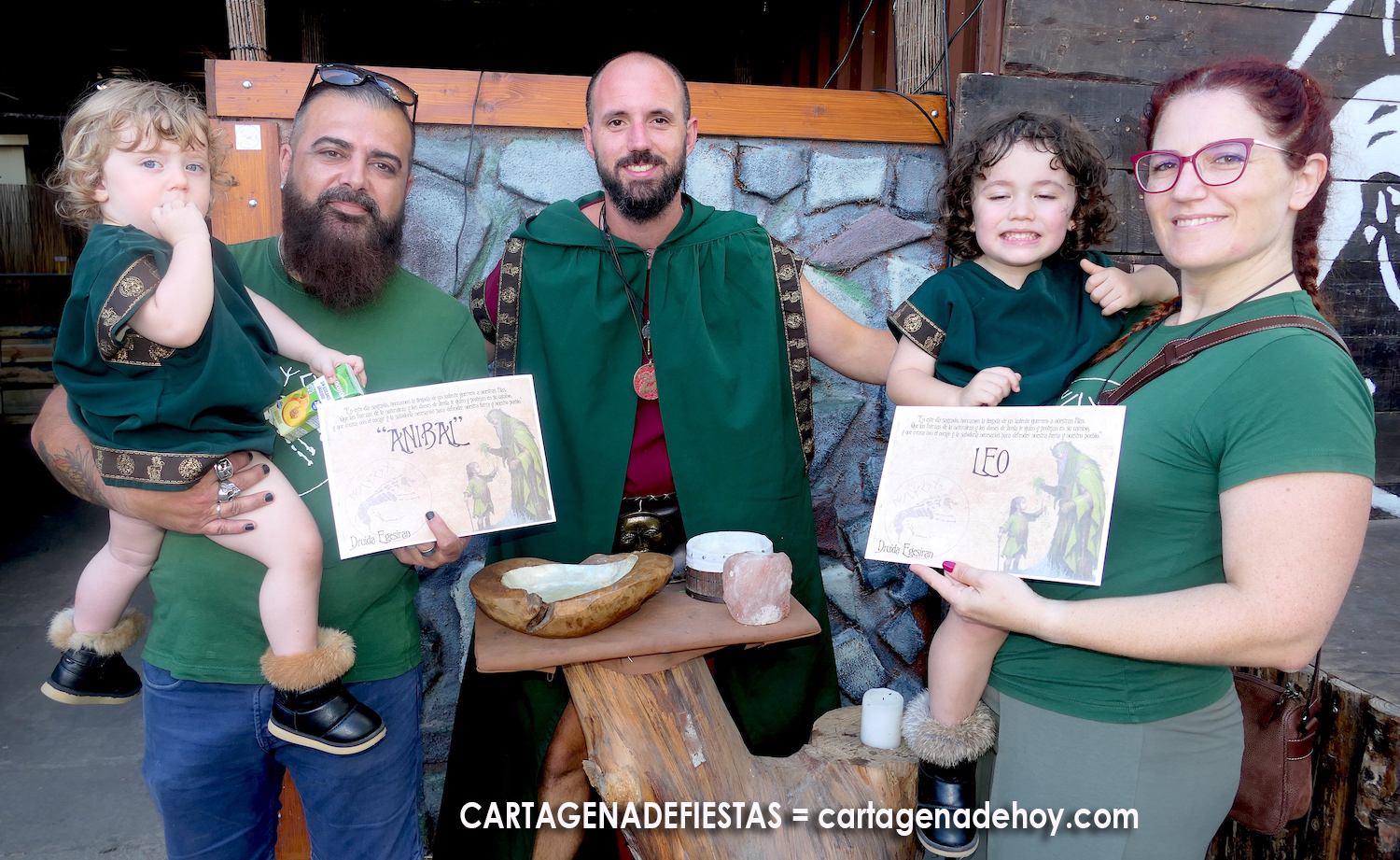 En la jornada de cierre del 'Annus XXXIV' fuimos testigos de los efectuados en dos. Uno fue Ilergetes de Indíbil, que atrajo a quince niños, entre los que no llamó la atención uno de nombre Aníbal, pues es un hombre de la historia cartagenera y que está comenzando a utilizarse a raíz de estas fiestas, pues antes era muy extraño encontrar a alguien que se llamase así. Tras la bendición y palabras del druida, los padres reciben un diploma acreditativo.