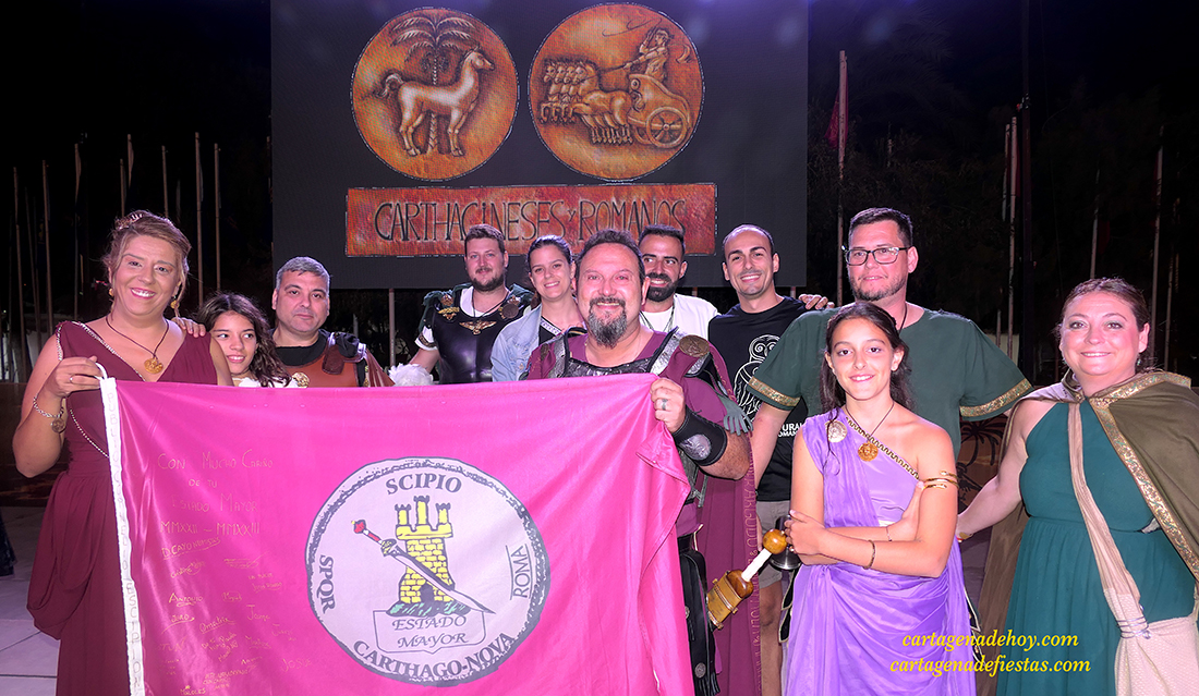 El Estado Mayor Romano y la Hermandad de la Bona Dea quisieron poner el broche a los dos años en que Javier Argudo y María Montserrat Robira han encarnado los personajes de Escipión y Emilia Paula obsequiándoles con una bandera del colectivo en señal de reconocimiento y gratitud, la cual fue entregada tras el apagado del fuego sagrado. Antes, cuando empezaron las fiestas, el general lució una capa que también le regalaron y en la que figuraban los nombres de los integrantes del Estado Mayor.