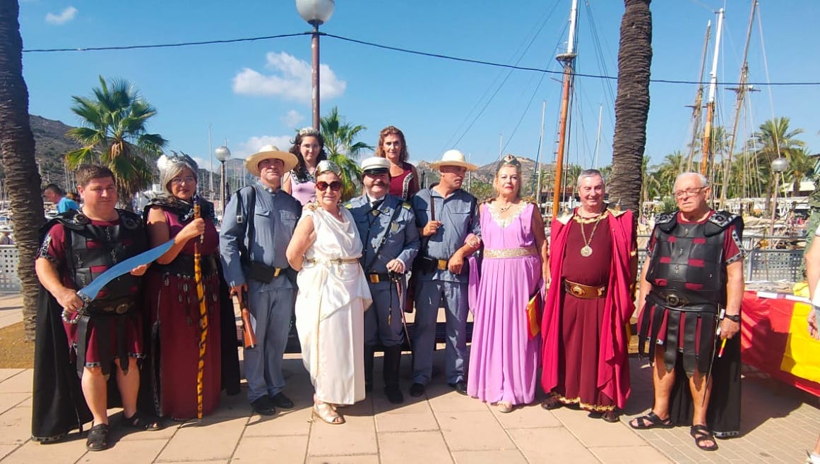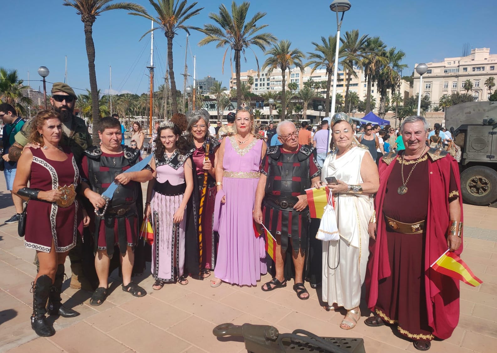 Festeros de la tropas Quart-Hadast, Mastienos y Mercenarios Íberos han estado hoy en la terminal 'Juan Sebastián Elcano' del puerto de Cartagena para recibir a los más de siete mil pasajeros de la triple escala de cruceros, además de visitar la exposición de material de diferentes ejércitos y secciones militares españolas con motivo de la Fiesta Nacional.