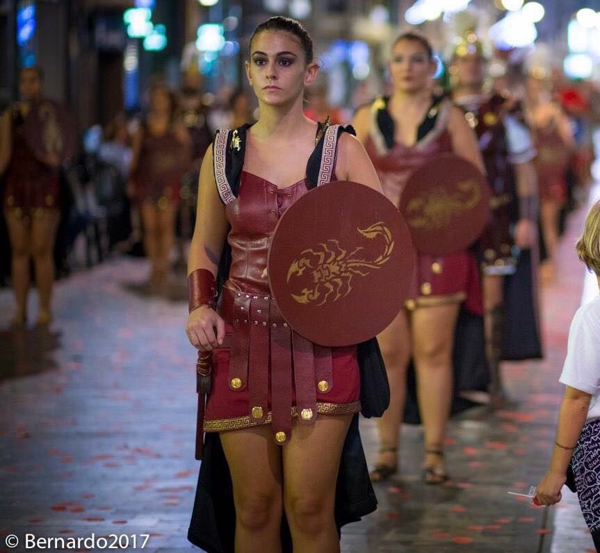 María Sabater López es vecina de Nueva Cartagena y está alistada desde hace siete años con la Guardia Pretoriana. “Unos amigos que estaban en esta legión me plantearon que me apuntase con ellos y acepté, pues se juntó entrar en unas fiestas que ya me llamaban mucho la atención (me gustaban mucho los desfiles) y hacerlo con gente que conocía. El primer año (2016) estuve de novata, me gustó y ya llevo siete años en la legión”, recuerda quien encarnará a la mujer del conquistador romano a Cartagena de Fiestas (Cartagena de Hoy) sobre sus inicios festeros. “La verdad es que las fiestas me han calado en muchos sentidos, como los actos, la historia, los desfiles, pasarlo bien en el campamento, donde ceno con mi gente, etc. Tiene muchos alicientes”, asevera.