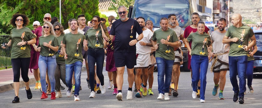 Alrededor de cincuenta relevistas se encargan de transportar la antorcha a lo largo de los 69 kilómetros que separan ambos municipios. El encendido del Fuego Sagrado comenzará en la noche de este viernes en el Cerro del Molinete y contará con la participación de un deportista muy popular de Santomera con vínculos con la ciudad portuaria, cuya identidad se desvelará durante el acto.