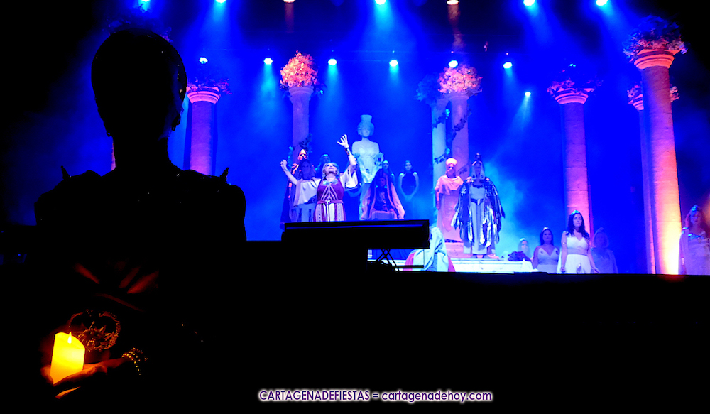 Una elástica danzarina rodeada por las sacerdotisas de Baal-Hammon son las primeras escenas que llegan a un completado graderío del auditorio más elevado de ‘La Trimilenaria’, el lugar donde más luce esta obra de apenas cuarenta minutos que ha vuelto a dirigir Adrián Quiñones.