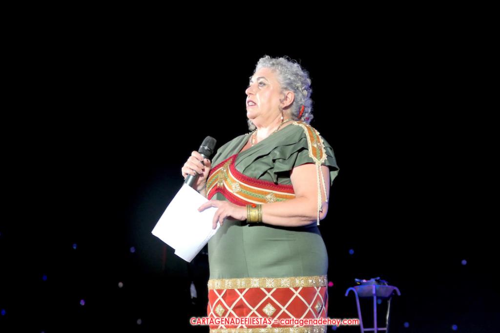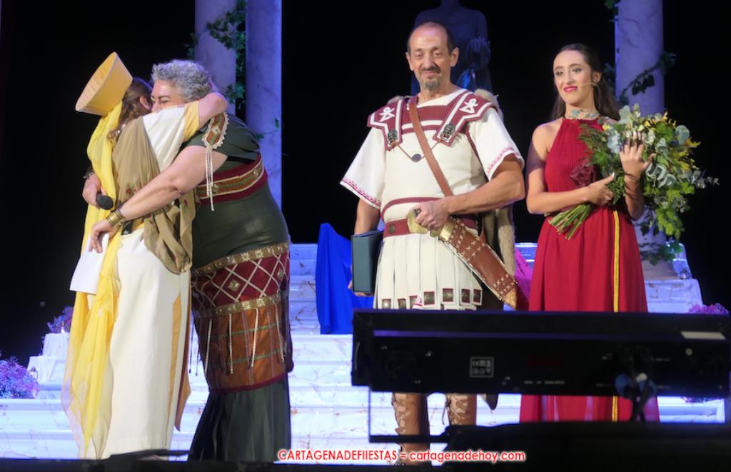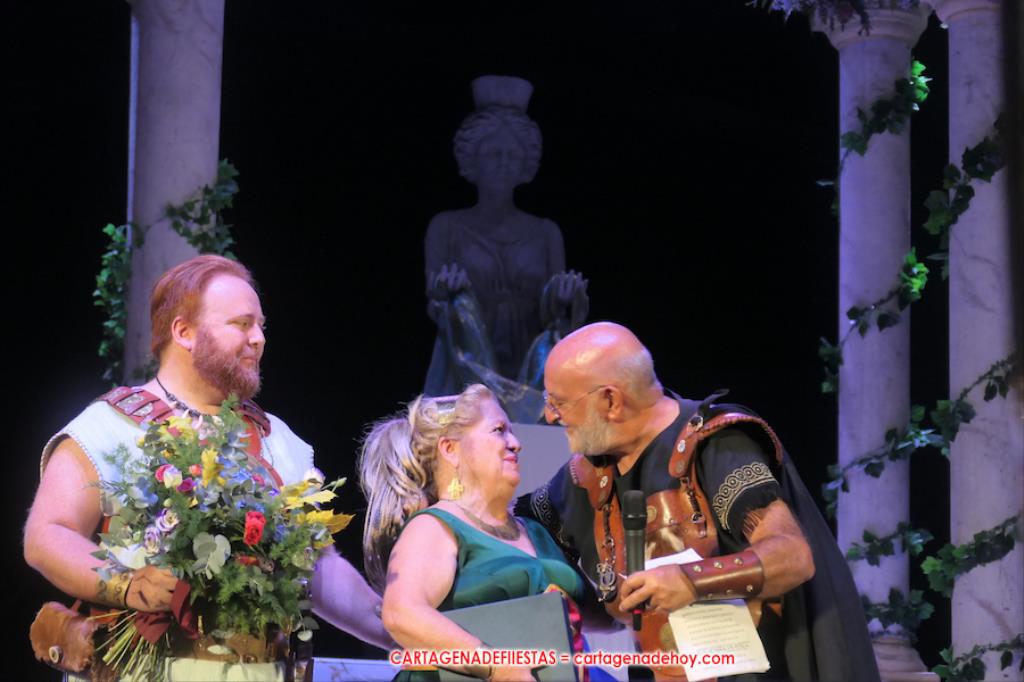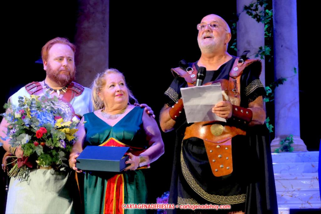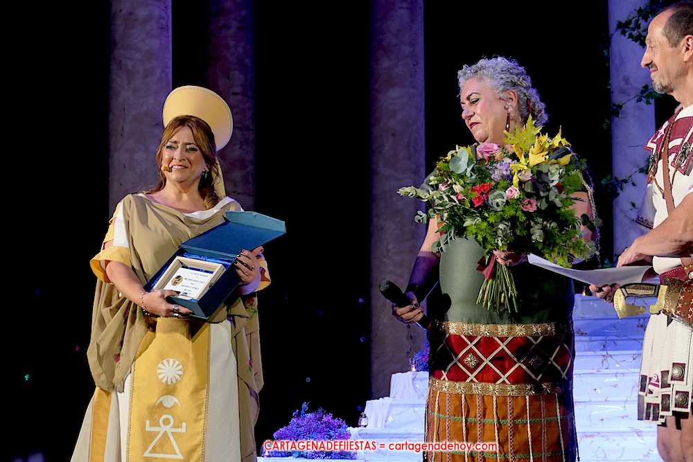 La representación del ‘Oráculo de la diosa Tanit’ en el auditorio del parque de Alfonso Torres ha estado precedido por honores carthagineses hacia dos de sus más leales alistados. Lola Pérez, presidenta del Consejo de Centuviros, ha comenzado efectuando una introducción hacia la primera galardonada de la noche, María del Carmen González, de Guardia de Tanit, de quien ha dicho que es un claro ejemplo “para todos por su pasión y compromiso”, desvelando que nunca ha fallado pese a residir a 200 kilómetros de Cartagena. El premio lo ha recibido antes de un acto en el que participa y del que fue coordinadora como directiva del Consejo.