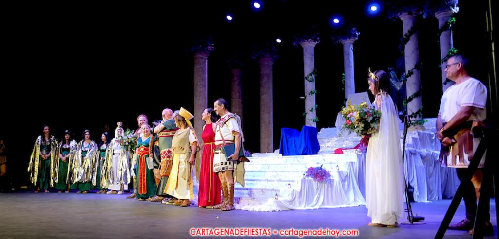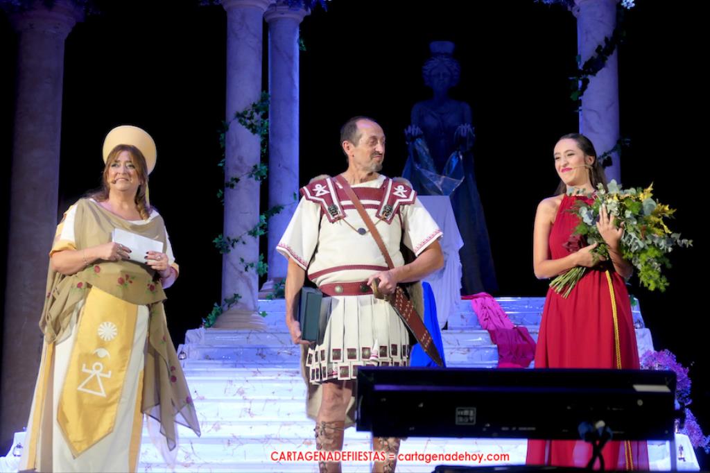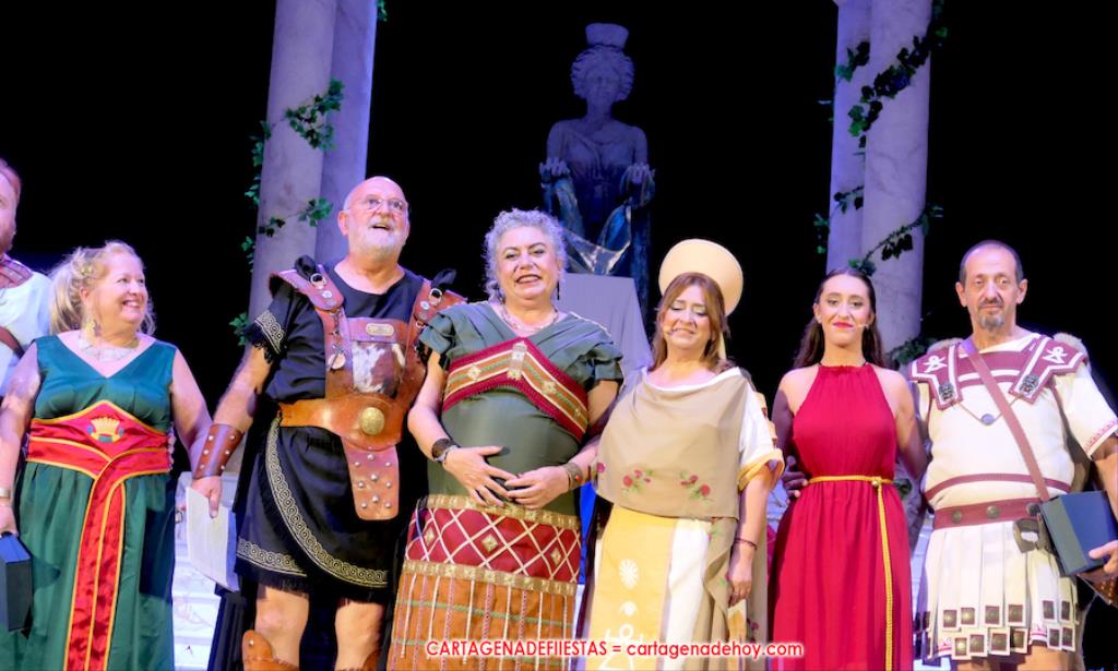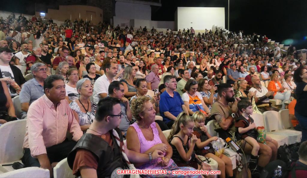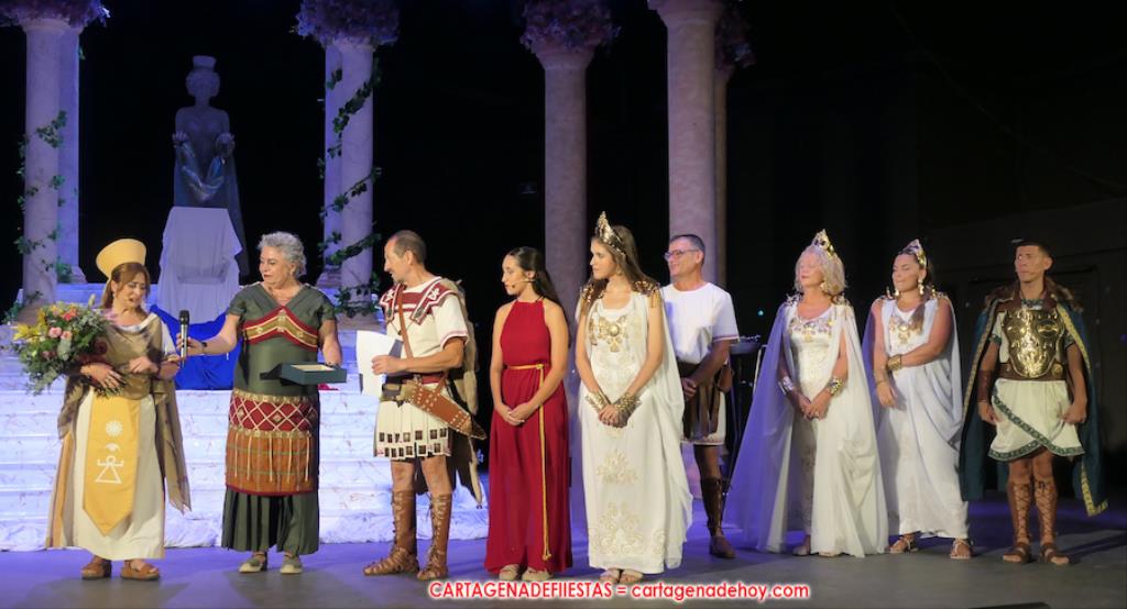 La representación del ‘Oráculo de la diosa Tanit’ en el auditorio del parque de Alfonso Torres ha estado precedido por honores carthagineses hacia dos de sus más leales alistados. Lola Pérez, presidenta del Consejo de Centuviros, ha comenzado efectuando una introducción hacia la primera galardonada de la noche, María del Carmen González, de Guardia de Tanit, de quien ha dicho que es un claro ejemplo “para todos por su pasión y compromiso”, desvelando que nunca ha fallado pese a residir a 200 kilómetros de Cartagena. El premio lo ha recibido antes de un acto en el que participa y del que fue coordinadora como directiva del Consejo.